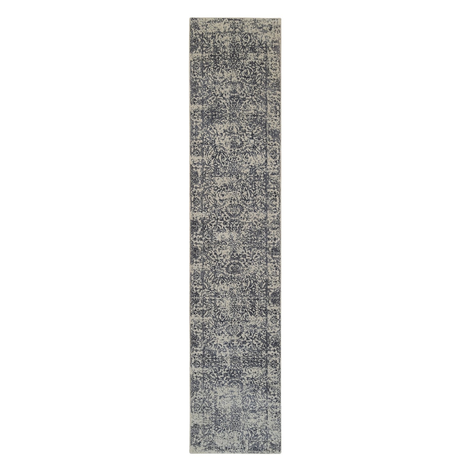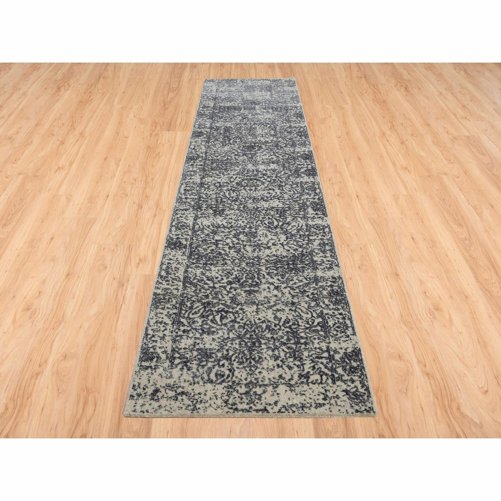 2'7"X12'2" Hand Loomed Gray Fine Jacquard Wool And Silk Runner Rug