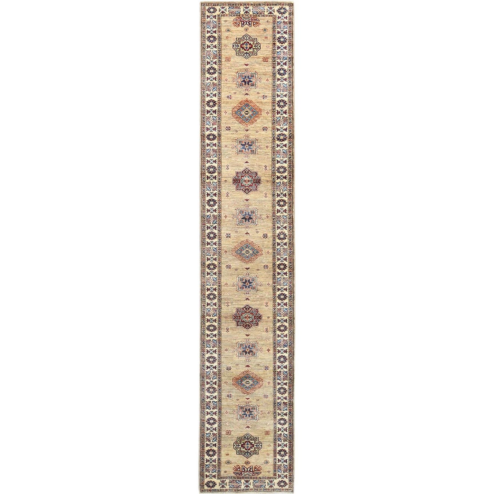 2'7"X13'6" Chamomile Afghan Super Kazak Wool Hand Knotted Rug