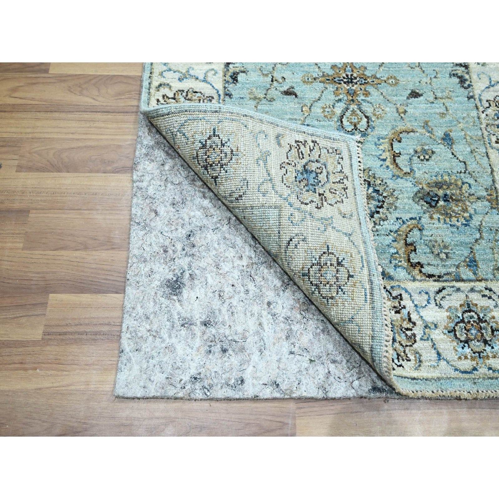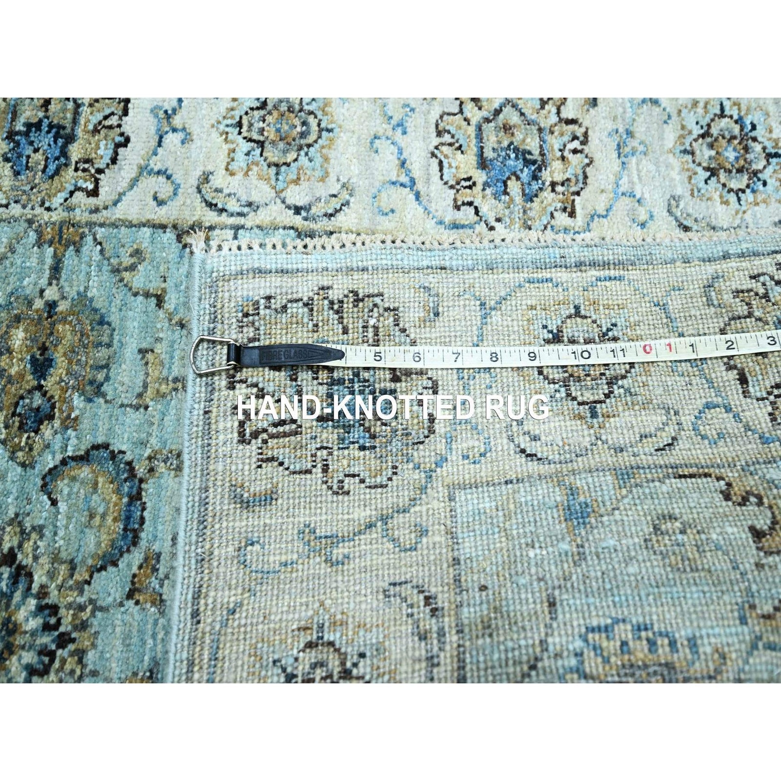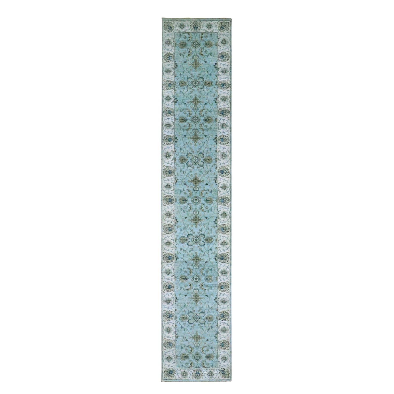 2'7"X14' Sky Blue Agra Flower Vines Design Wool Hand Knotted Runner Rug