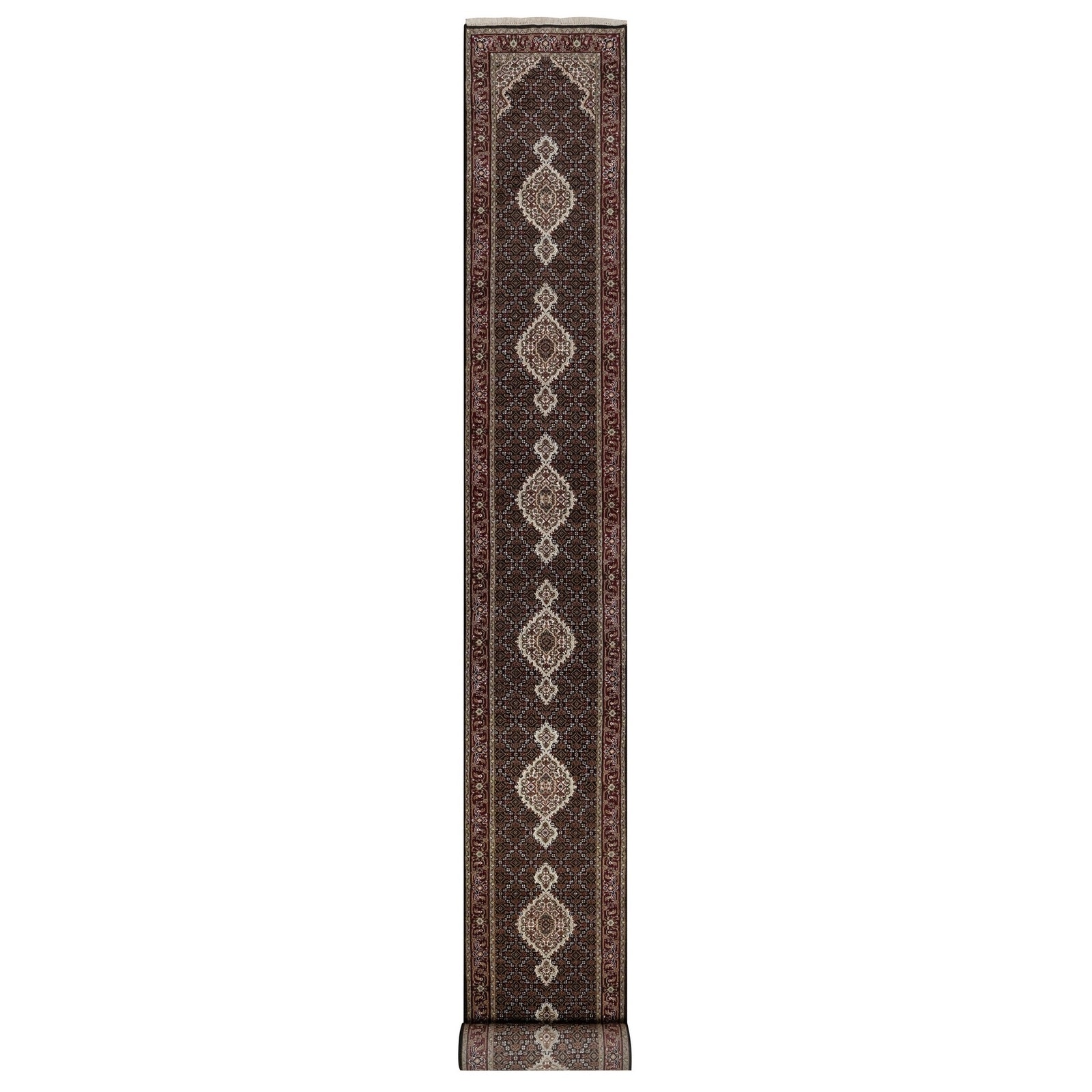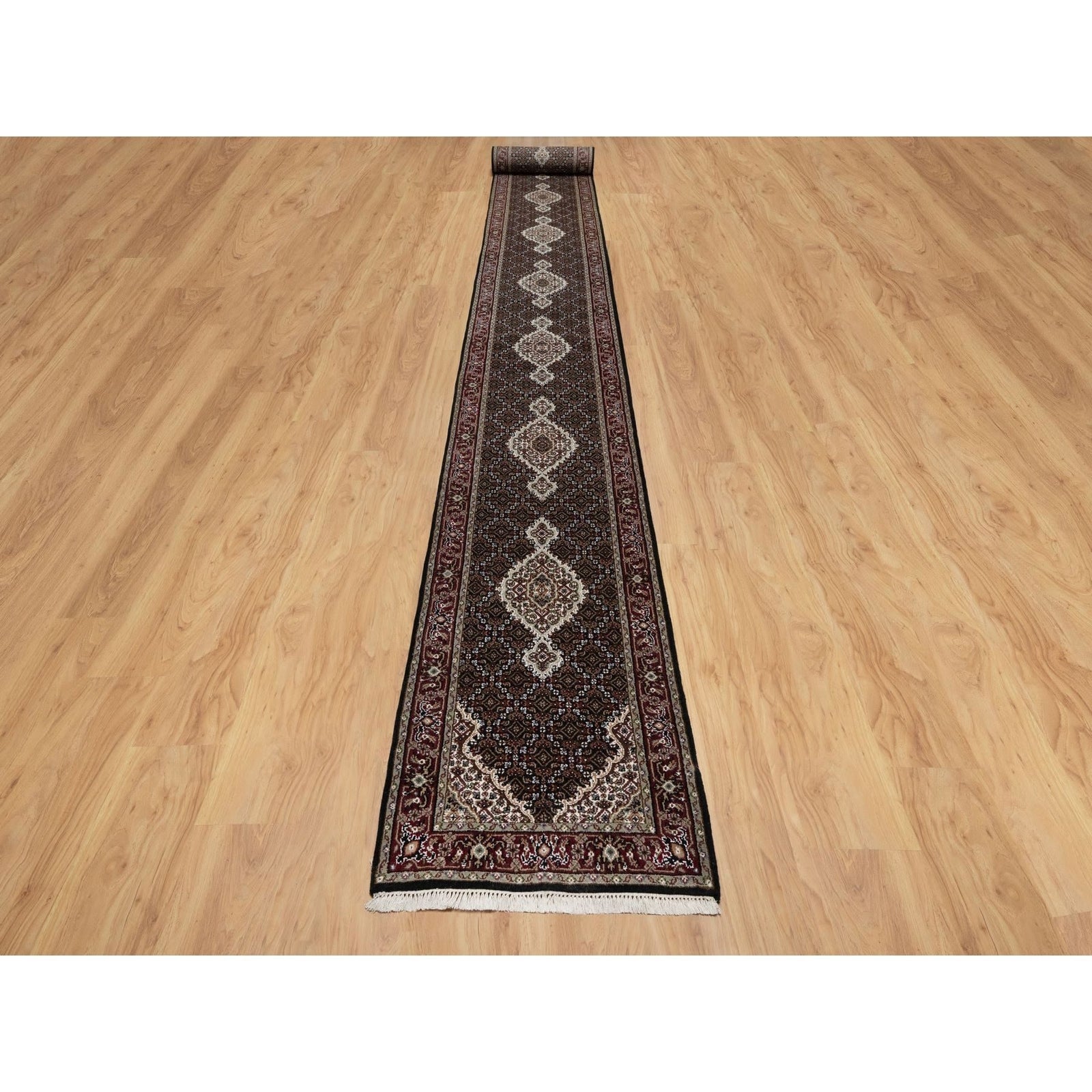 2'7"X24'1" Black Tebraz Mahi Fish Design Hand Knotted Wool Xl Runner Rug