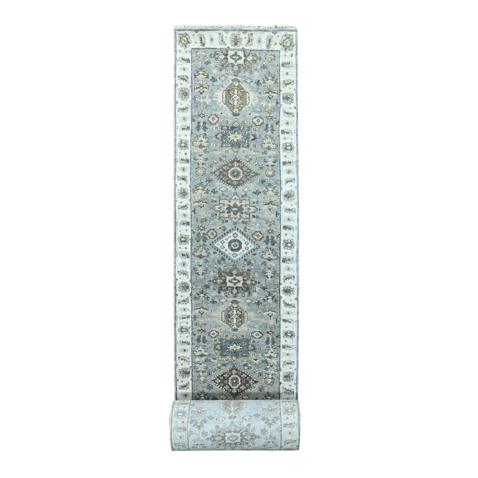 2'7"X27'9" Gray Karjihooz Geometric Design Hand Knotted Wool Runner Rug