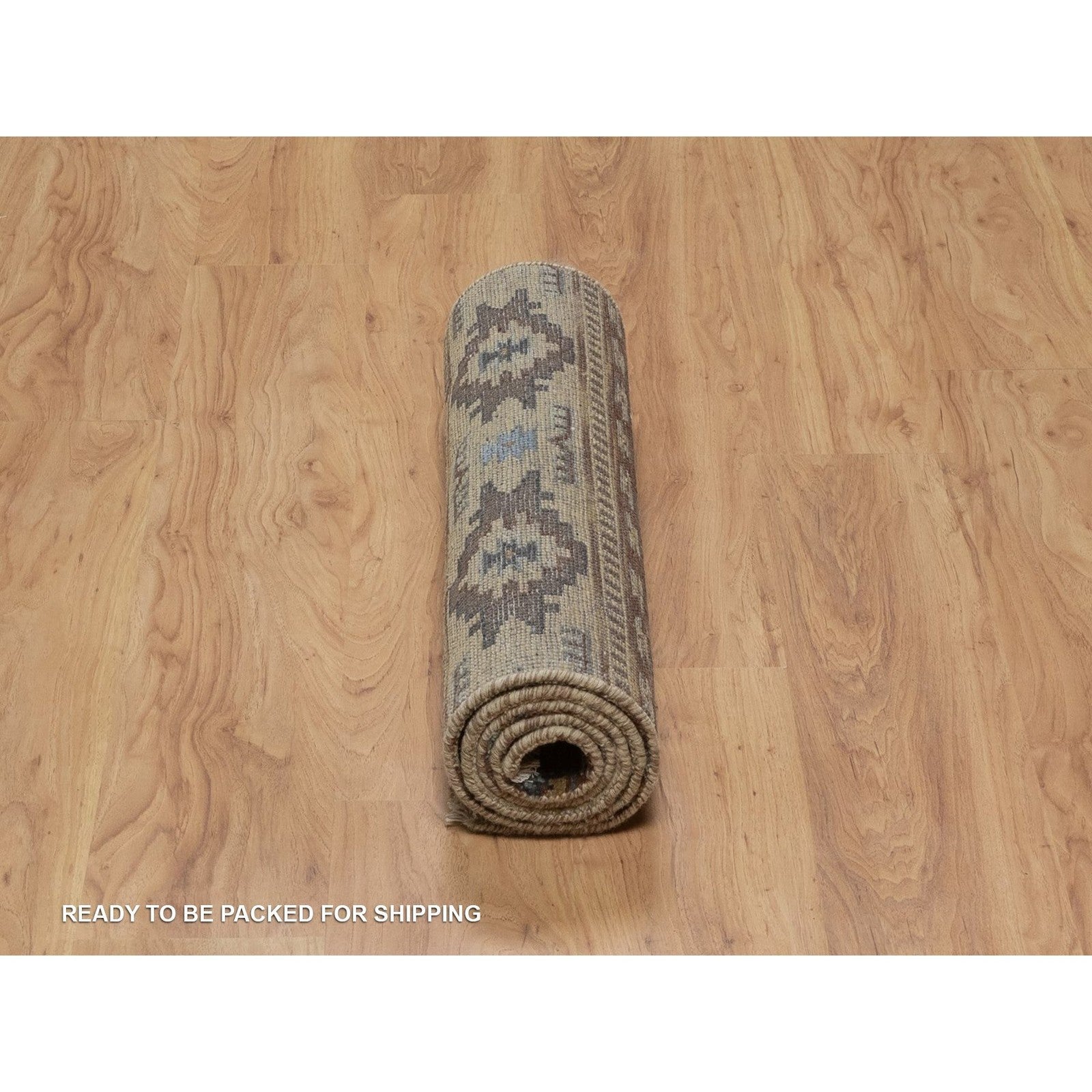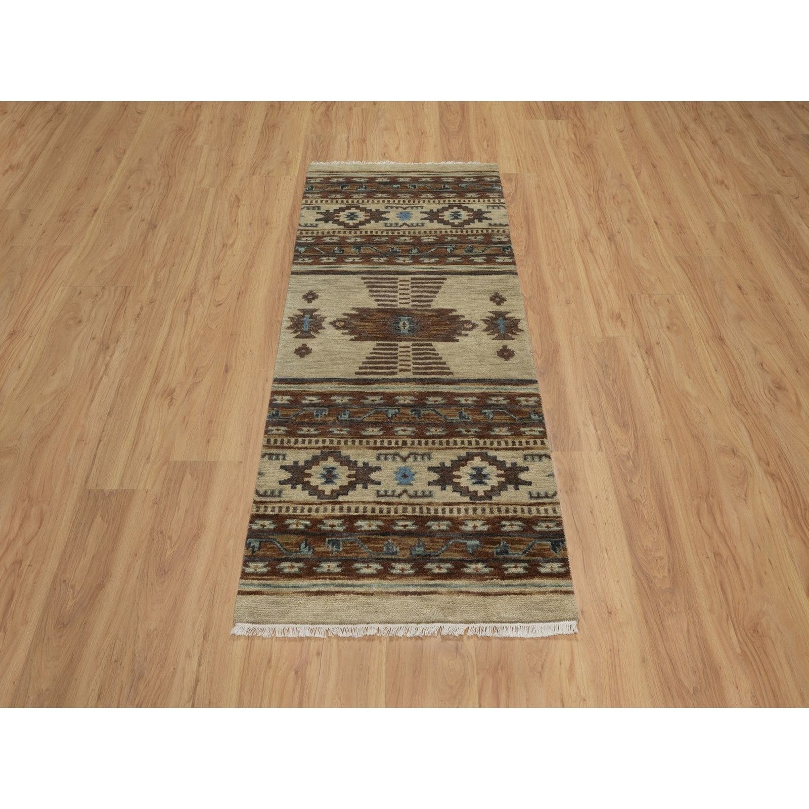 2'7"X5'10" Ivory Runner Rug Southwest Medallion Design Hand Knotted Wool