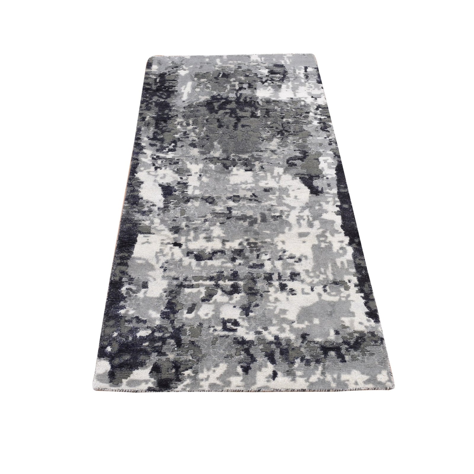 2'7"X5'9" Black Galaxy Design Wool And Silk Hand Knotted Runner Rug