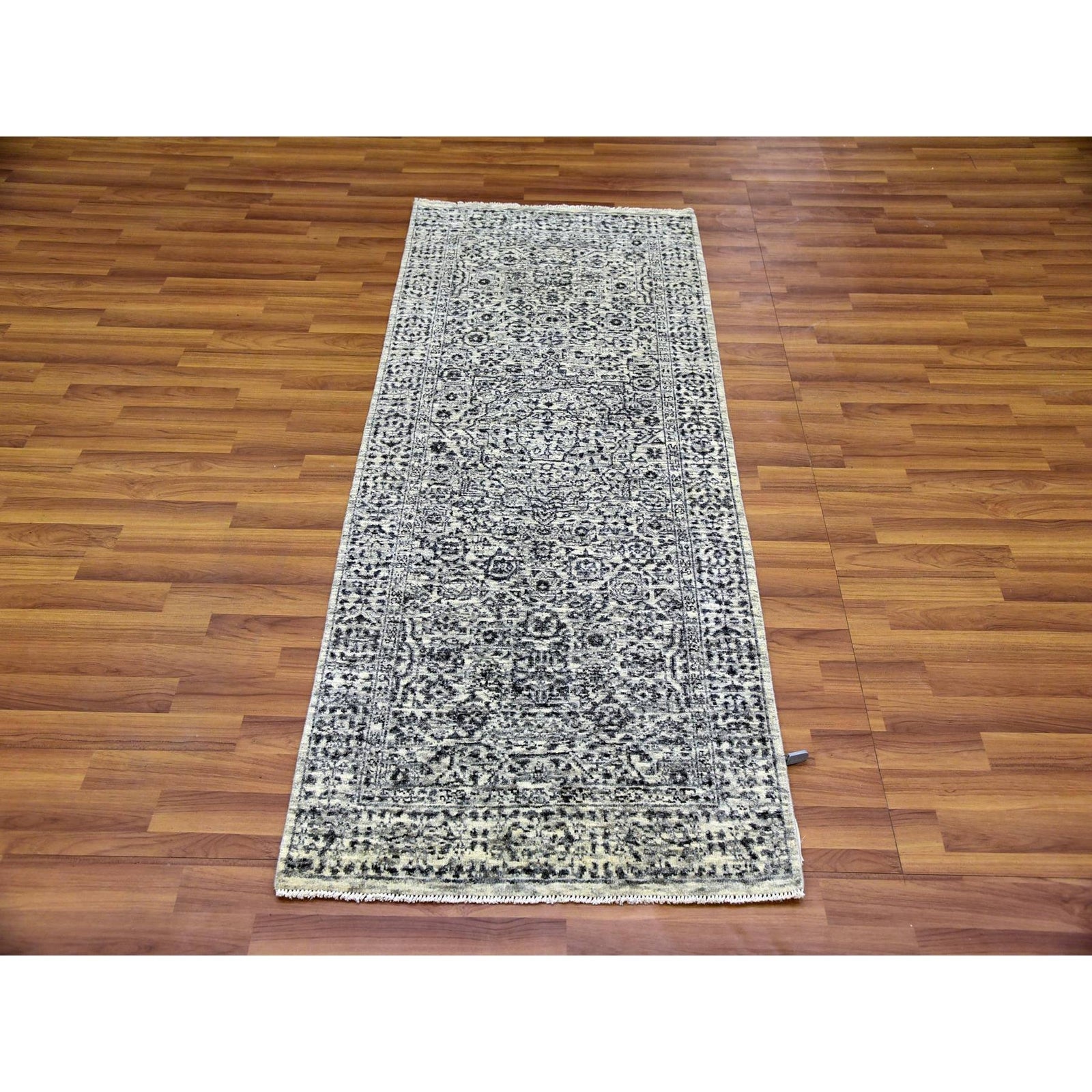 2'7"X6' White Mamluk Dynasty Design Undyed Wool Hand Knotted Runner Rug