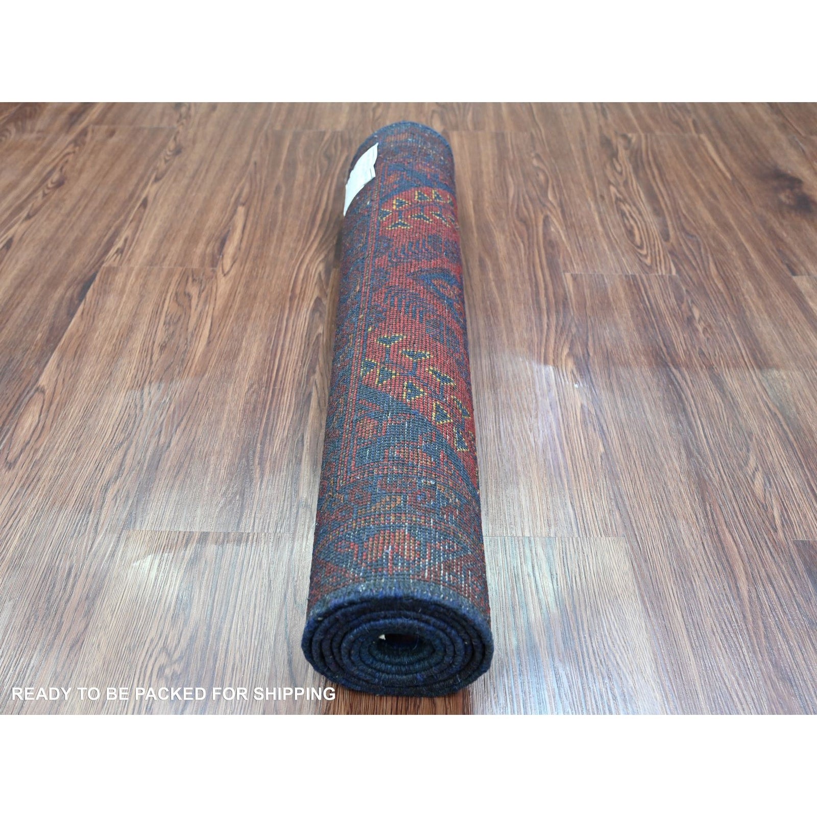 2'7"X6'5" Red Soft Wool Andkhoy Geometric Design Hand Knotted Runner Rug
