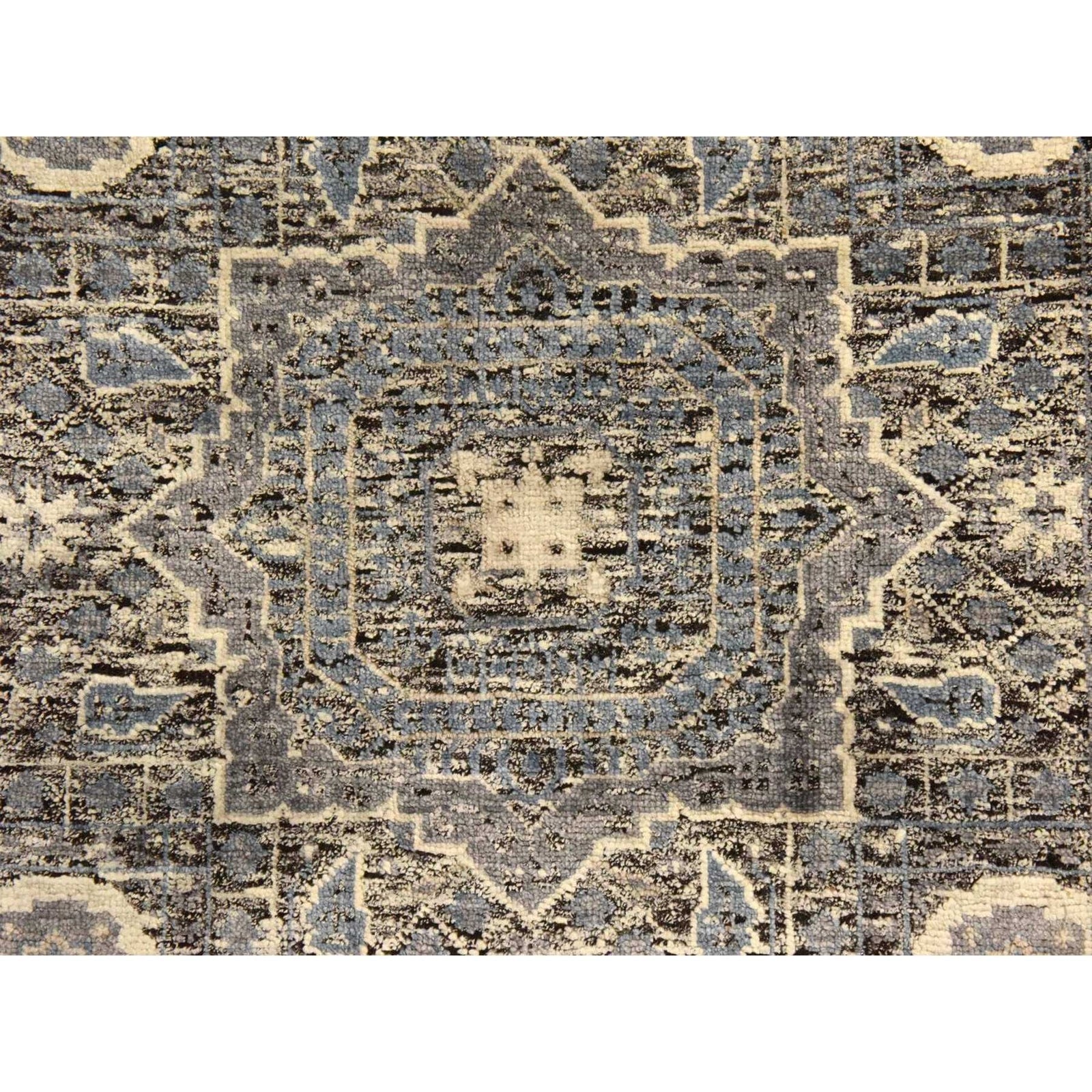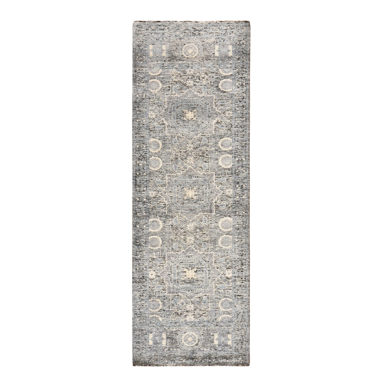 2'7"X8' Beau Blue Silken Mamluk Design Washed Out Hand Knotted Runner Rug