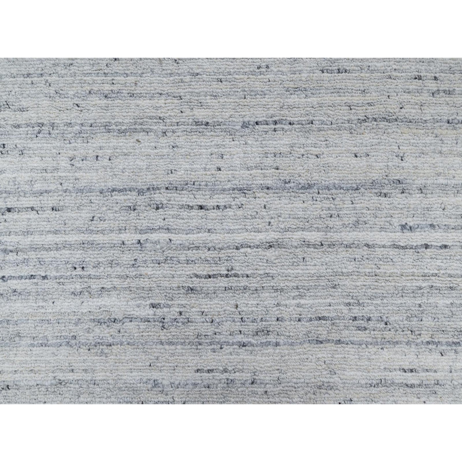2'7"X8' Ice Gray Modern Striae Design Natural Wool Hand Loomed Runner Rug