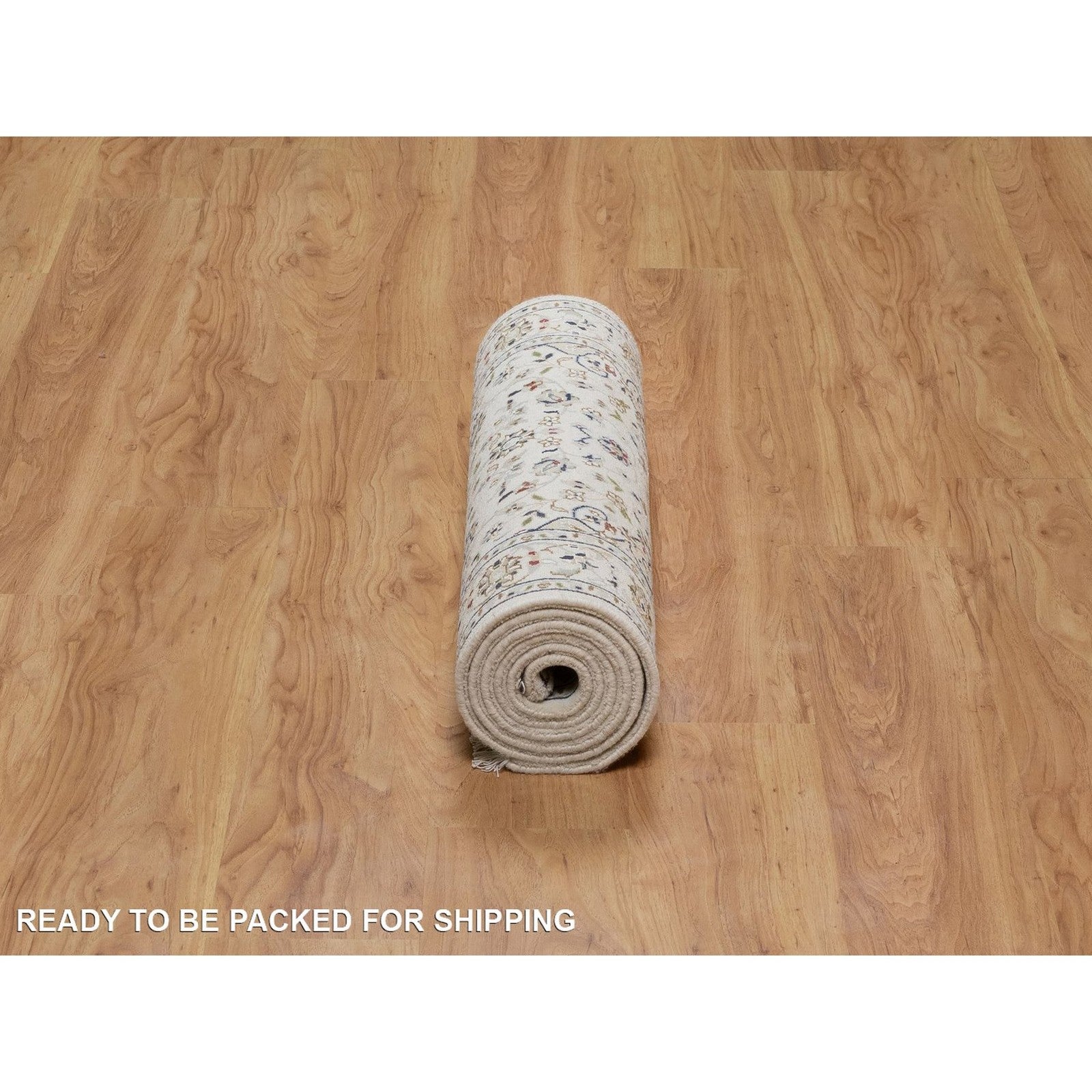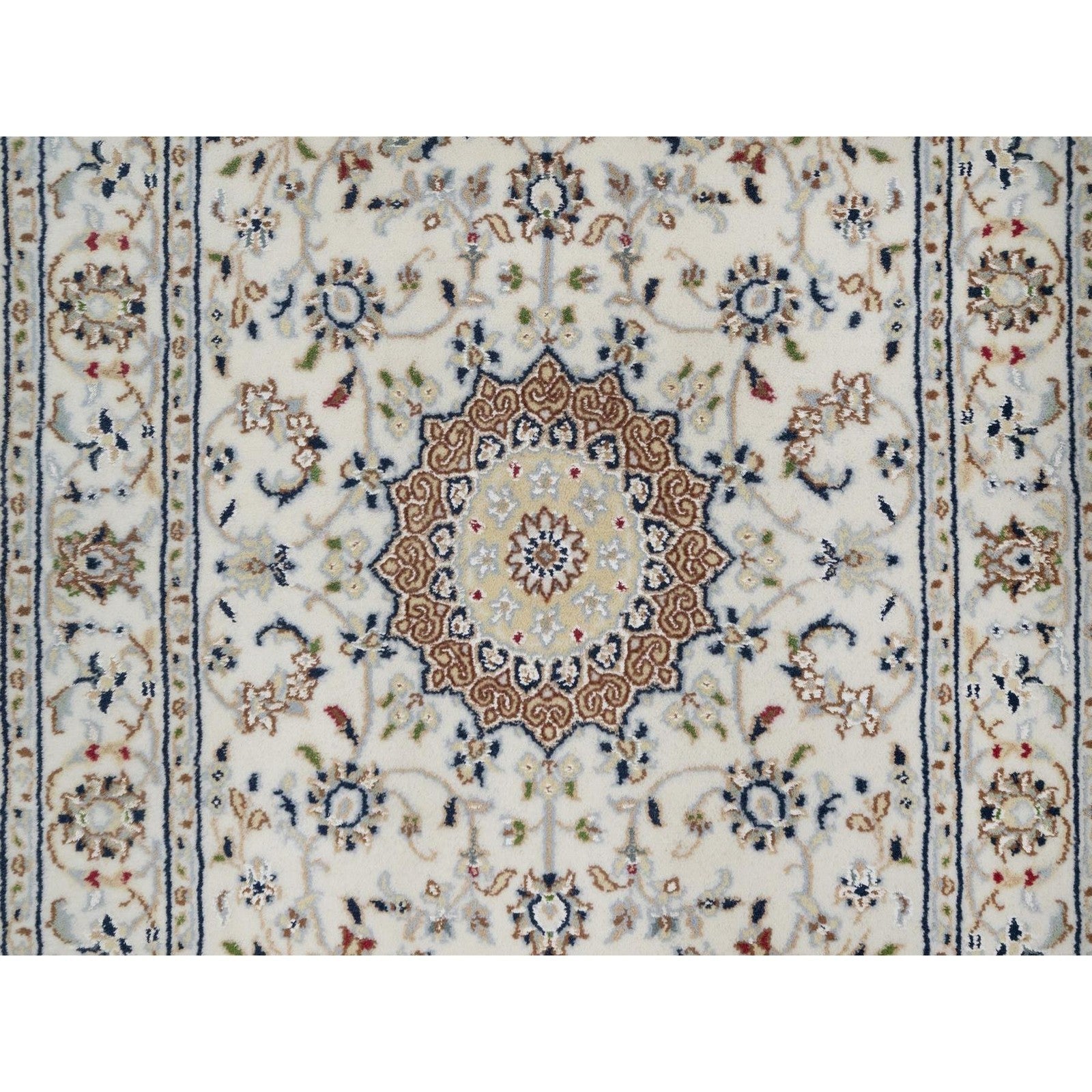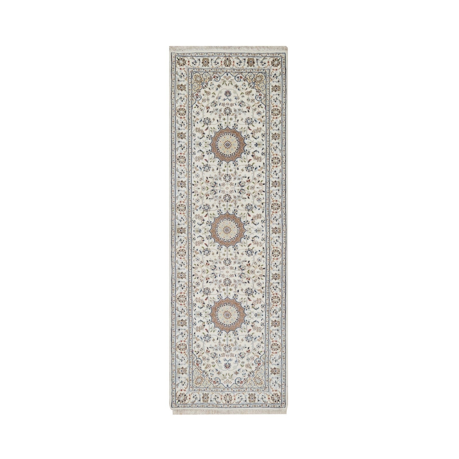 2'7"X8' Ivory Nain Medallion Design Hand Knotted Wool And Silk Runner Rug