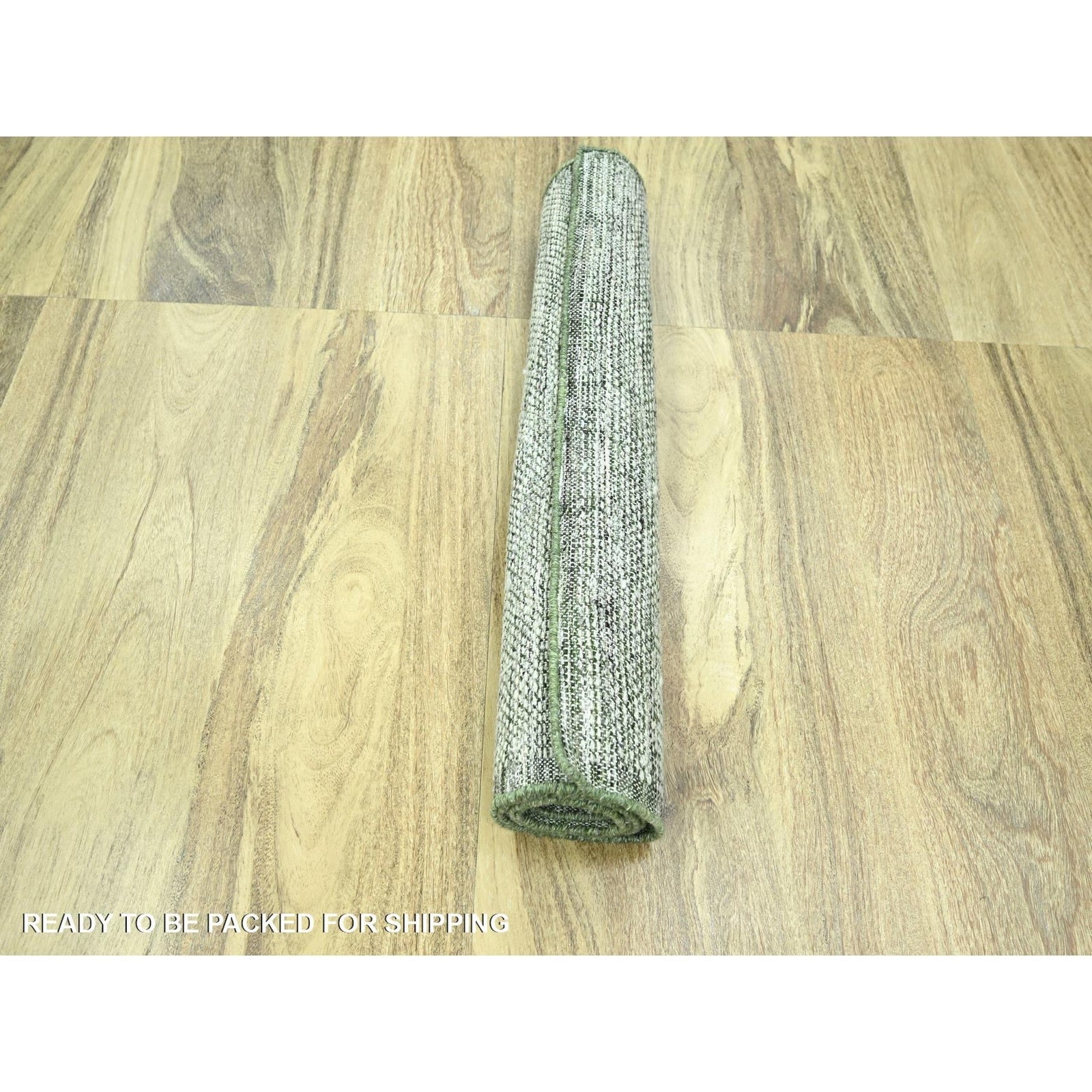 2'7"X8' White & Green Hand Knotted Oxidized Grass Design Wool Runner Rug