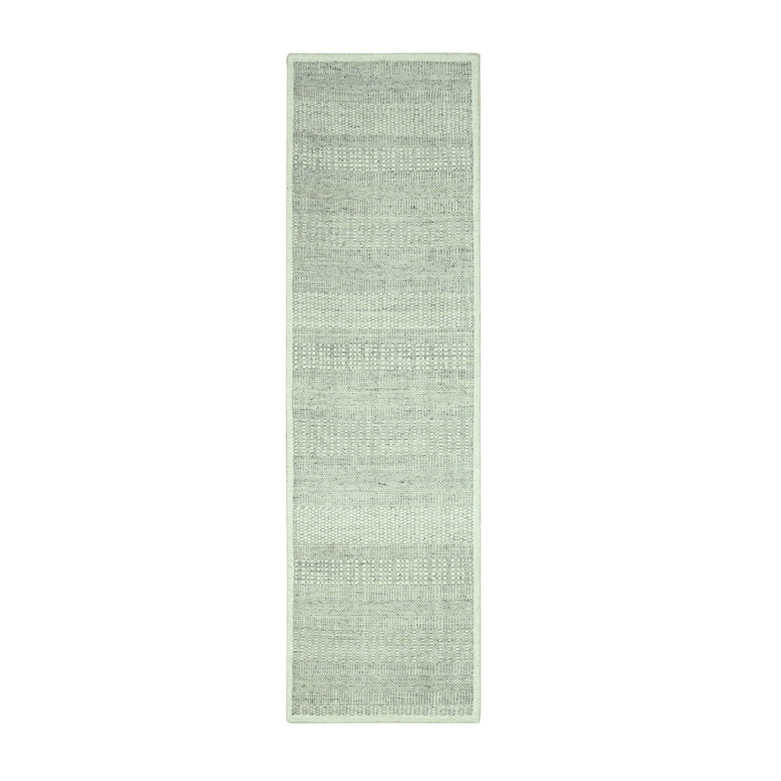 2'7"X8'1" Gray 100% Wool Rug Hand Knotted Oxidized Grass Design Runner