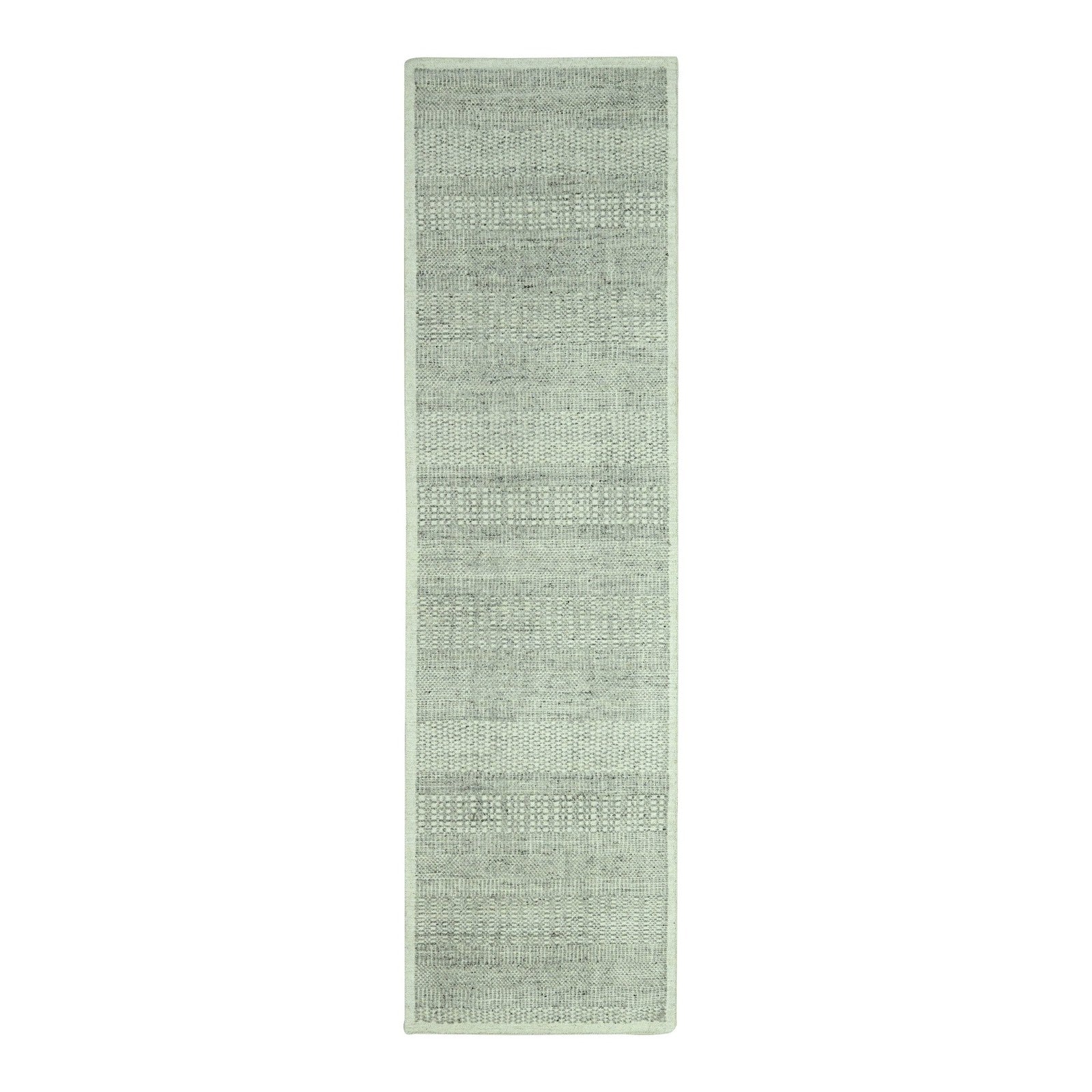 2'7"X8'1" Gray Pure Wool Rug Hand Knotted Oxidized Grass Design Runner
