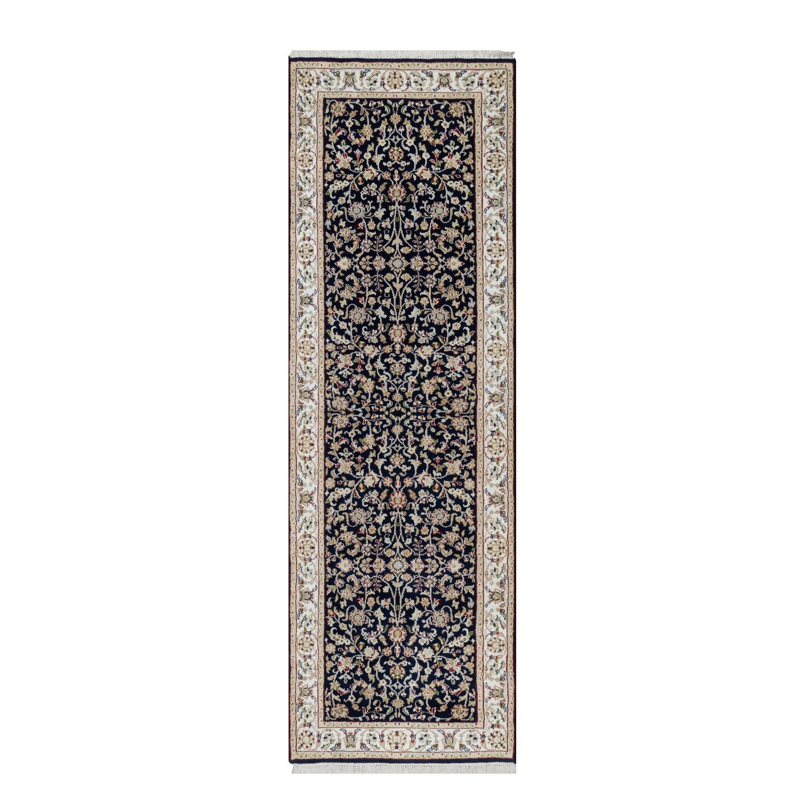 2'7"X8'1" Midnight Blue Wool And Silk Nain Hand Knotted Runner Rug