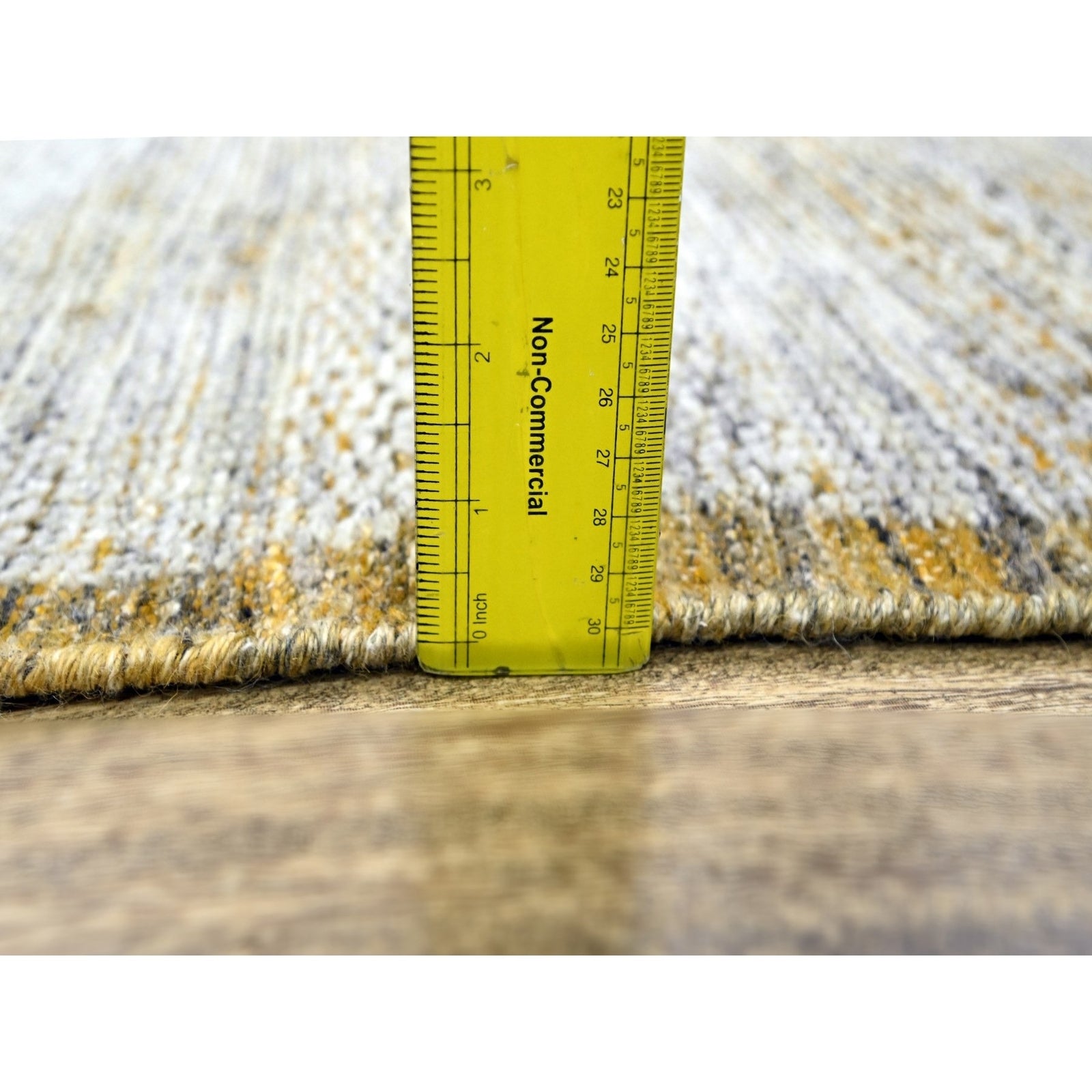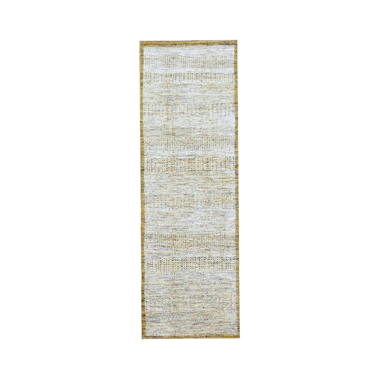 2'7"X8'2" White & Gold Hand Knotted Oxidized Grass Design Wool Runner Rug