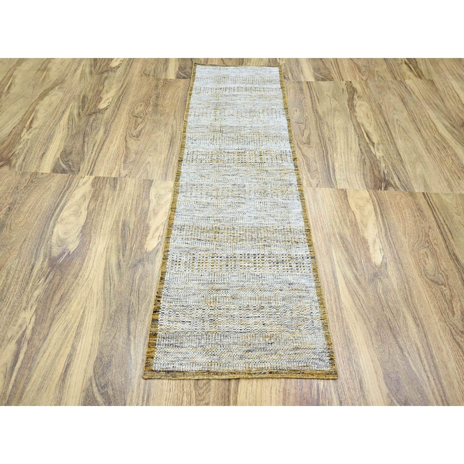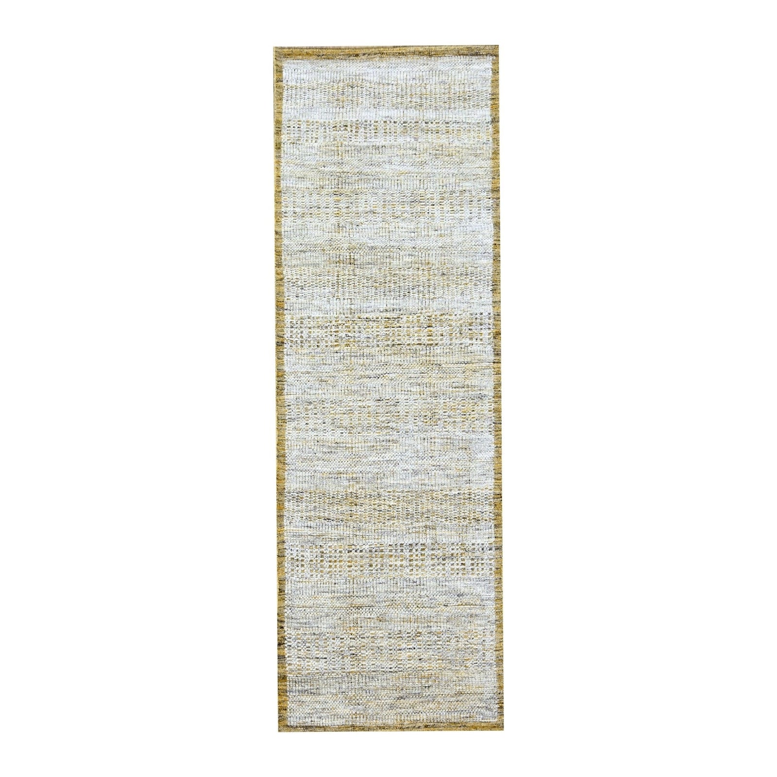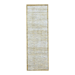 2'7"X8'2" White & Gold Hand Knotted Oxidized Grass Design Wool Runner Rug