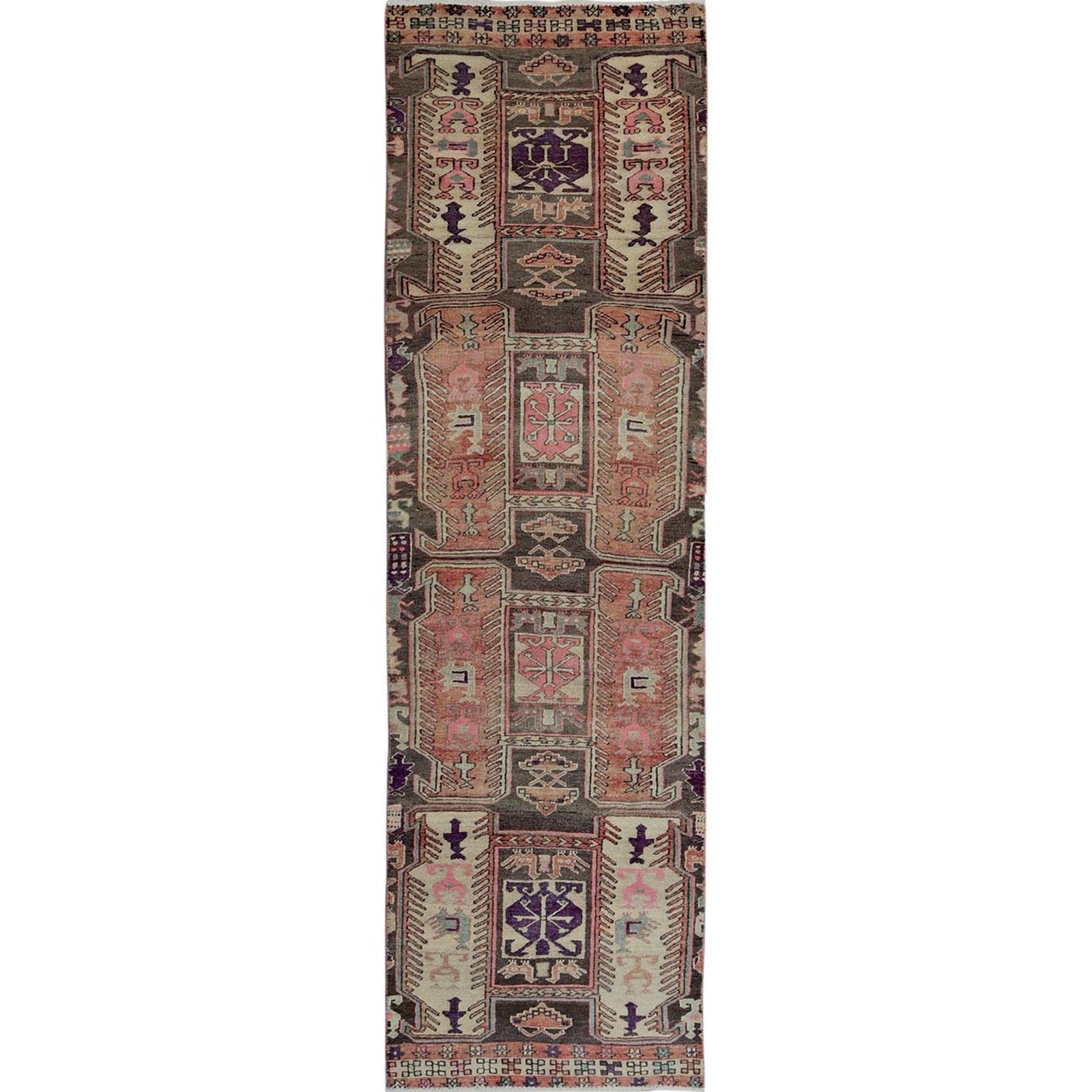 2'7"X9'1" Peach Vintage Zoroastrianheris Hand Knotted Pure Wool Runner Rug