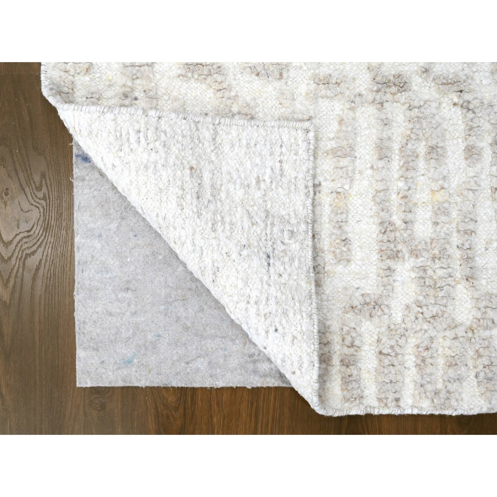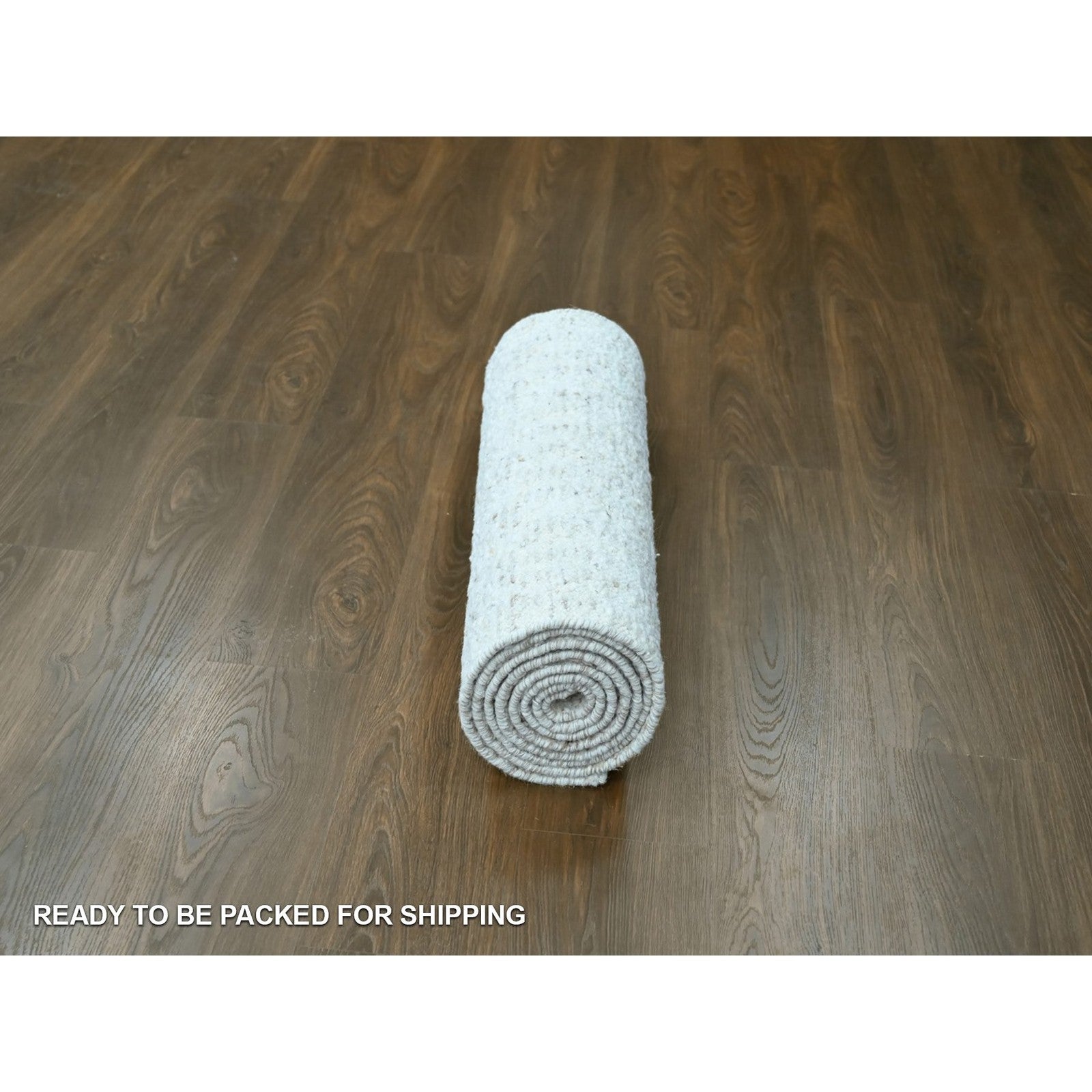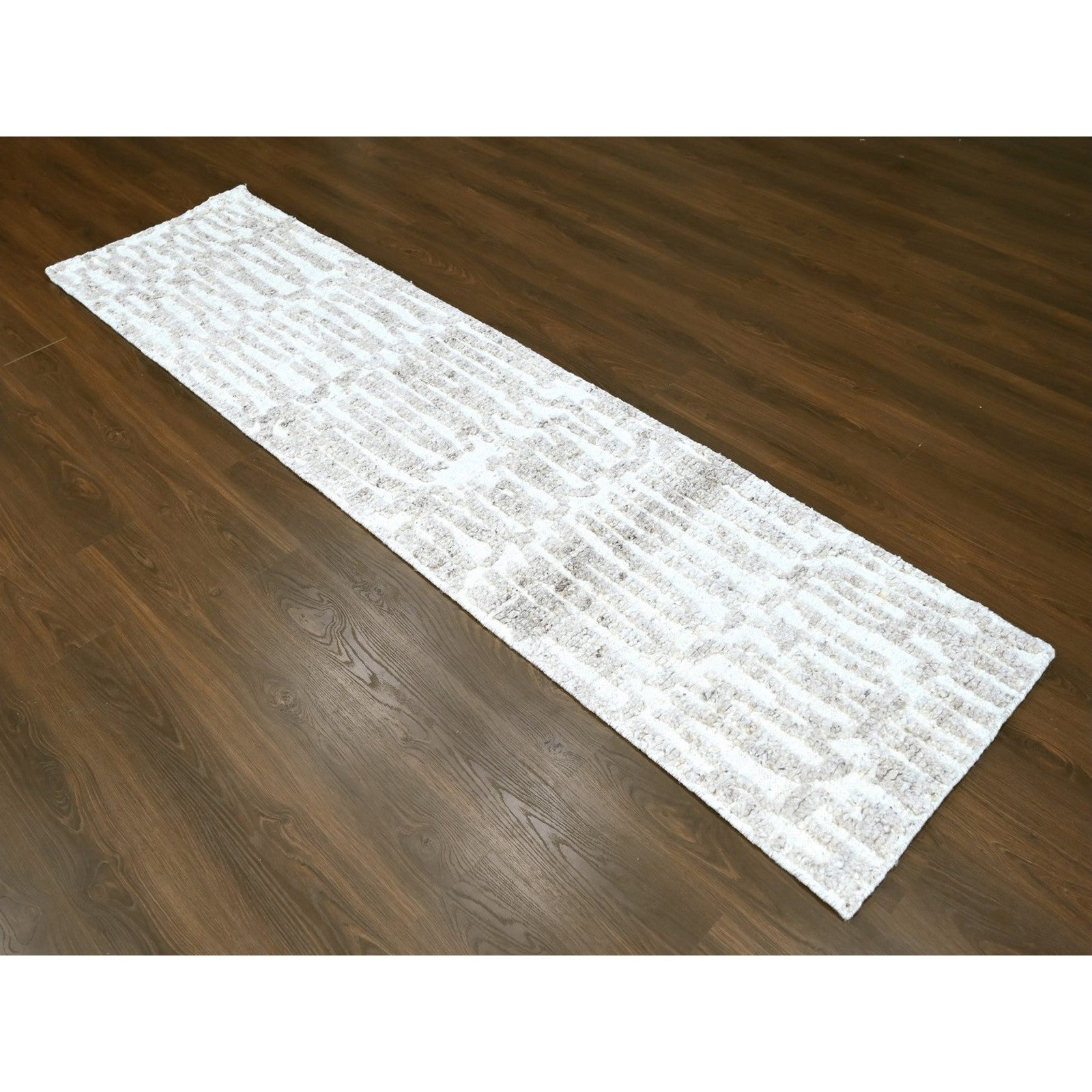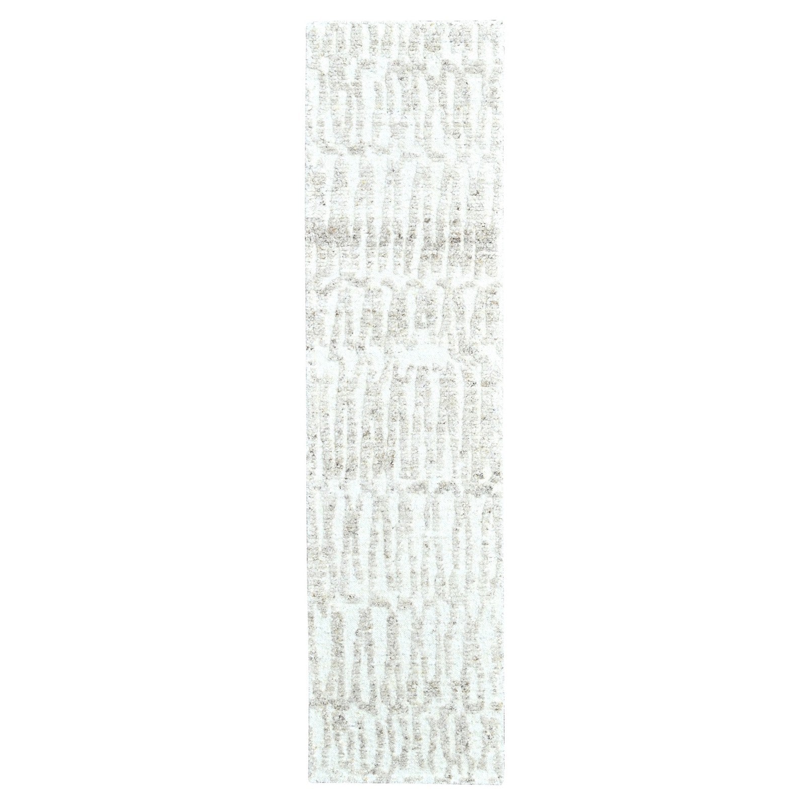2'7"X9'10" Ivory Hand Knotted Minimalist Swedish Design Wool Runner Rug
