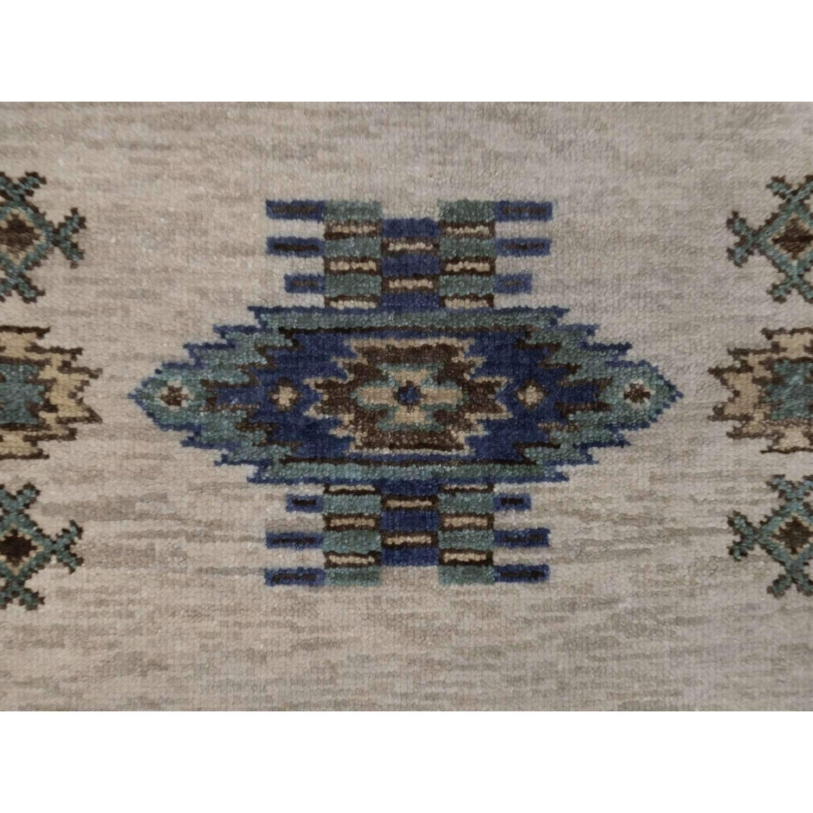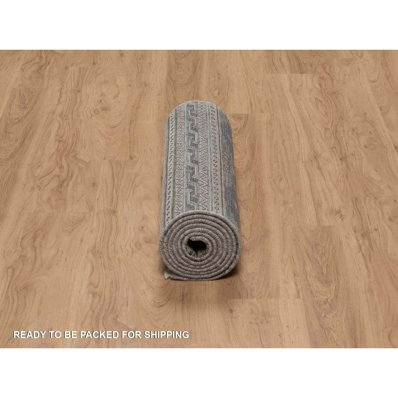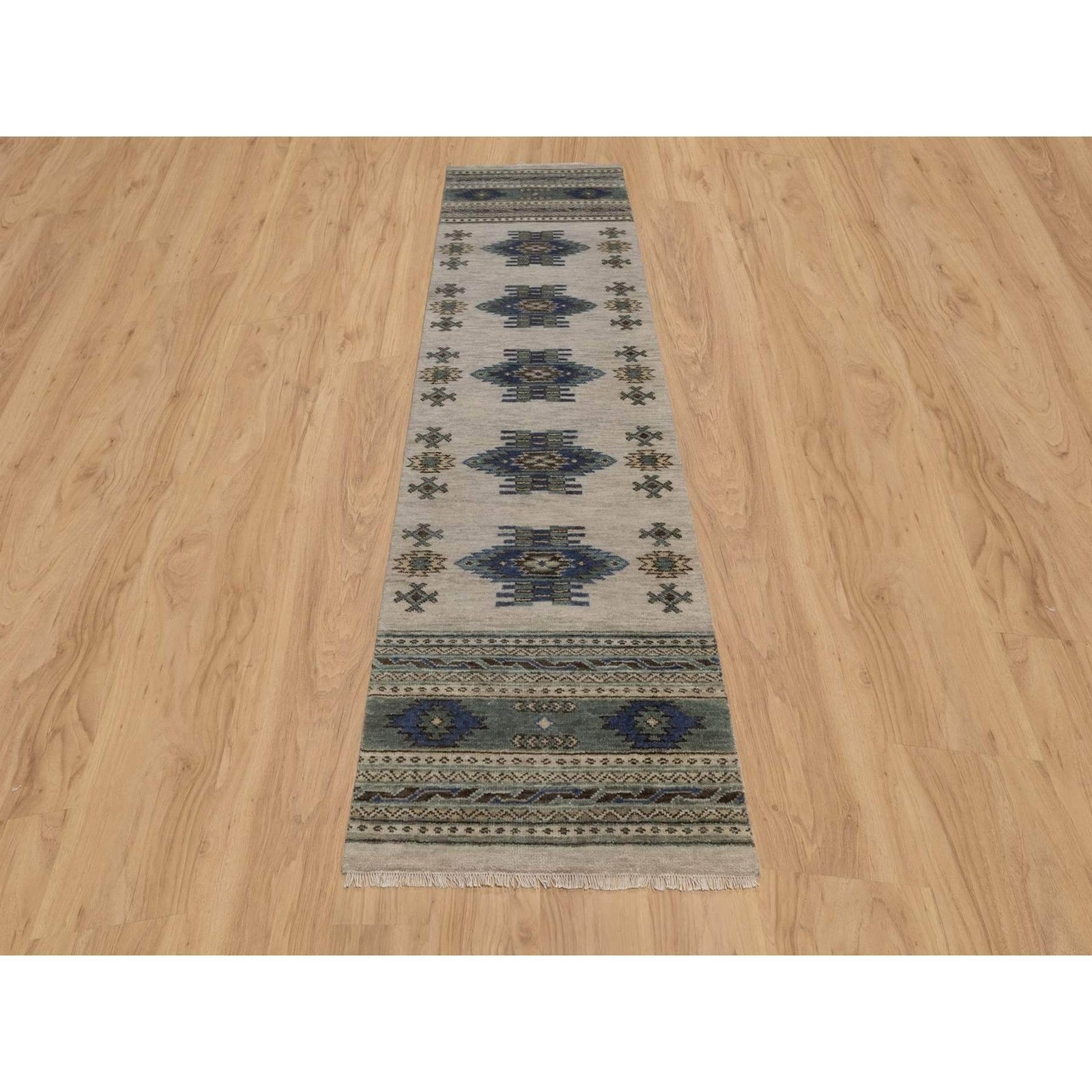 2'7"X9'10" Light Gray Southwest Design Hand Knotted Pure Wool Runner Rug