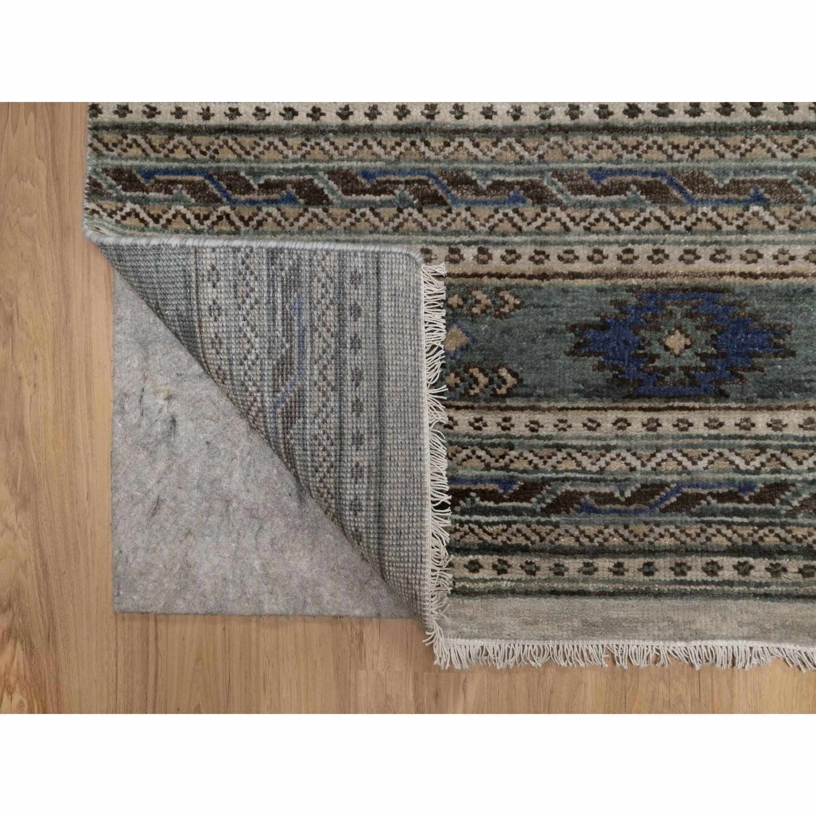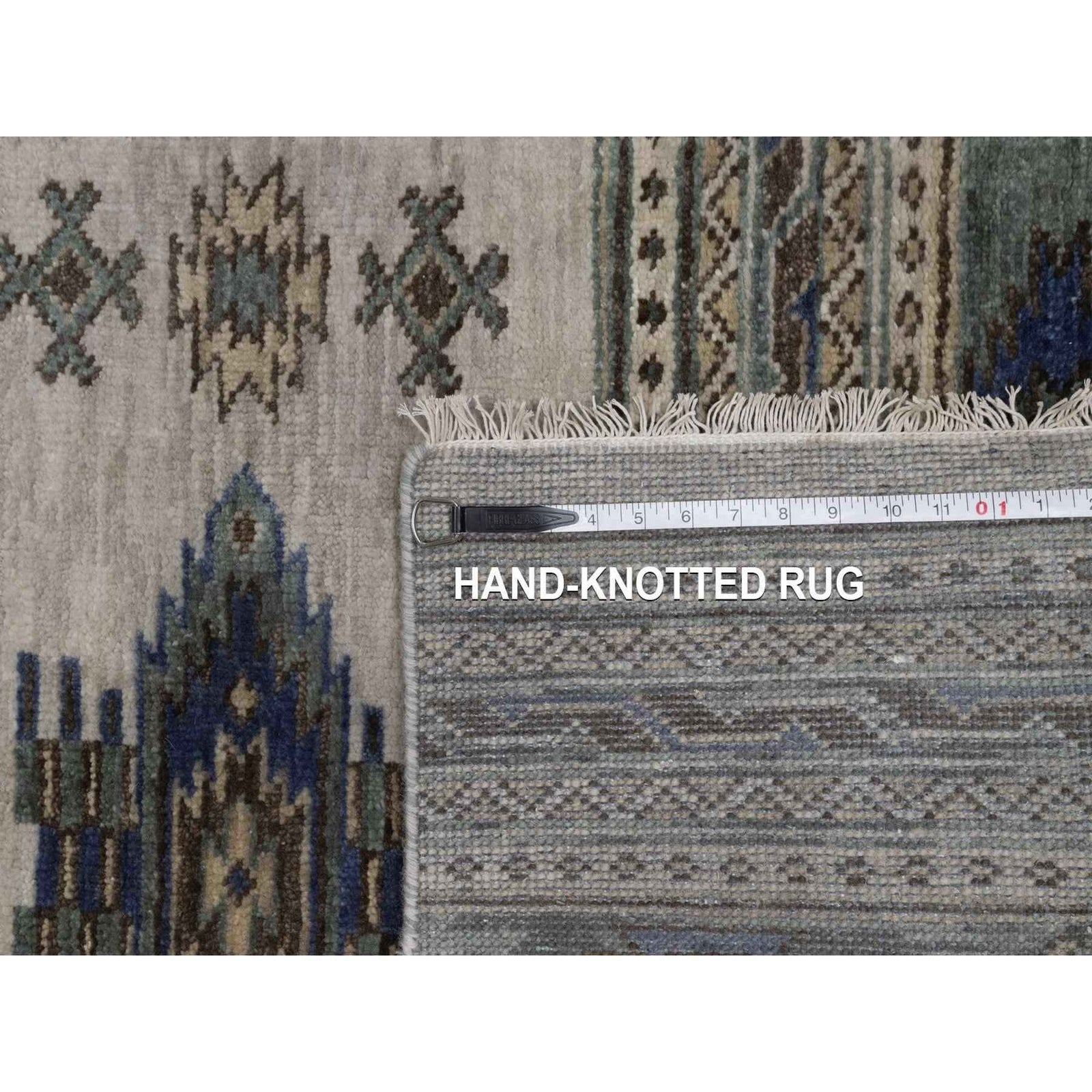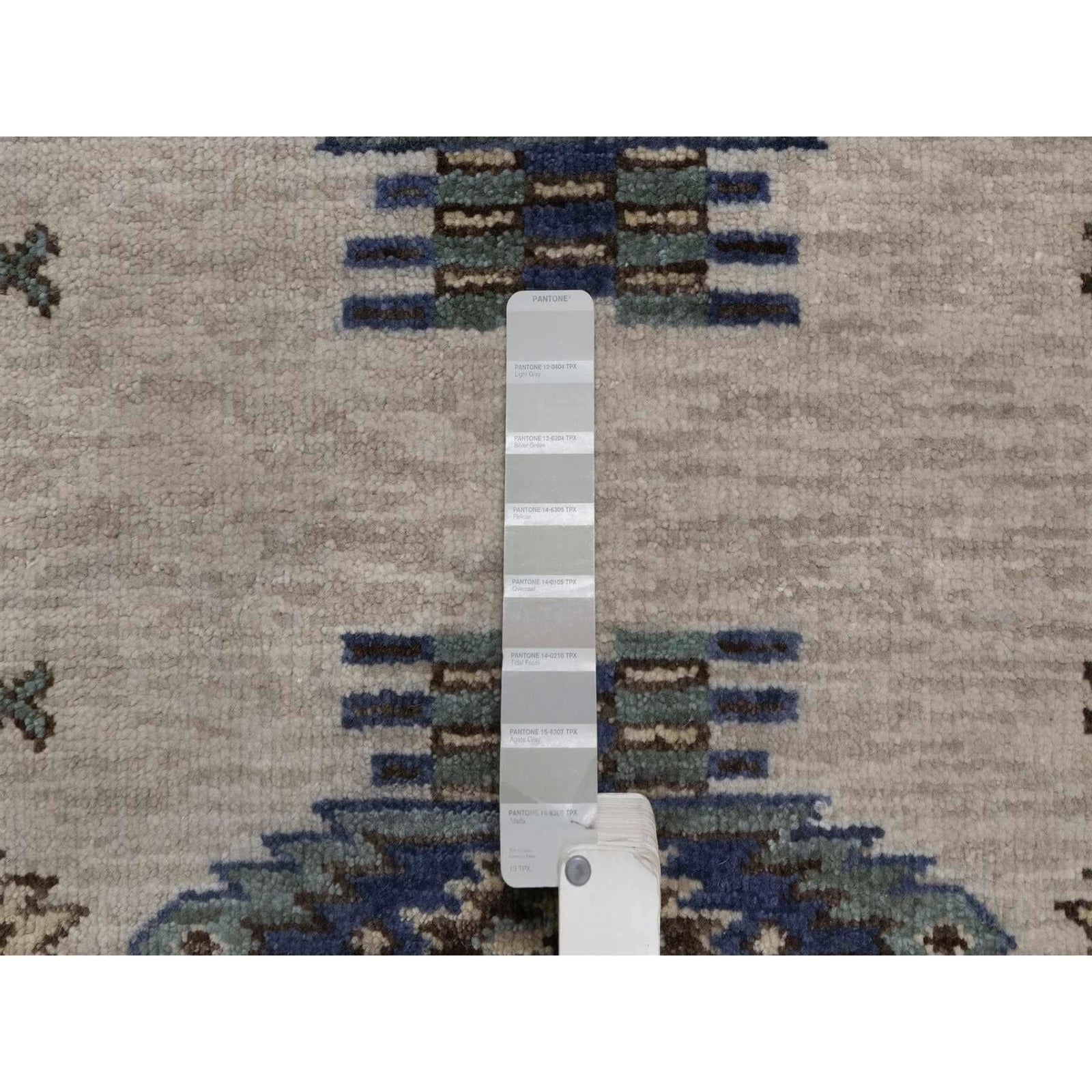 2'7"X9'10" Light Gray Southwest Design Hand Knotted Pure Wool Runner Rug