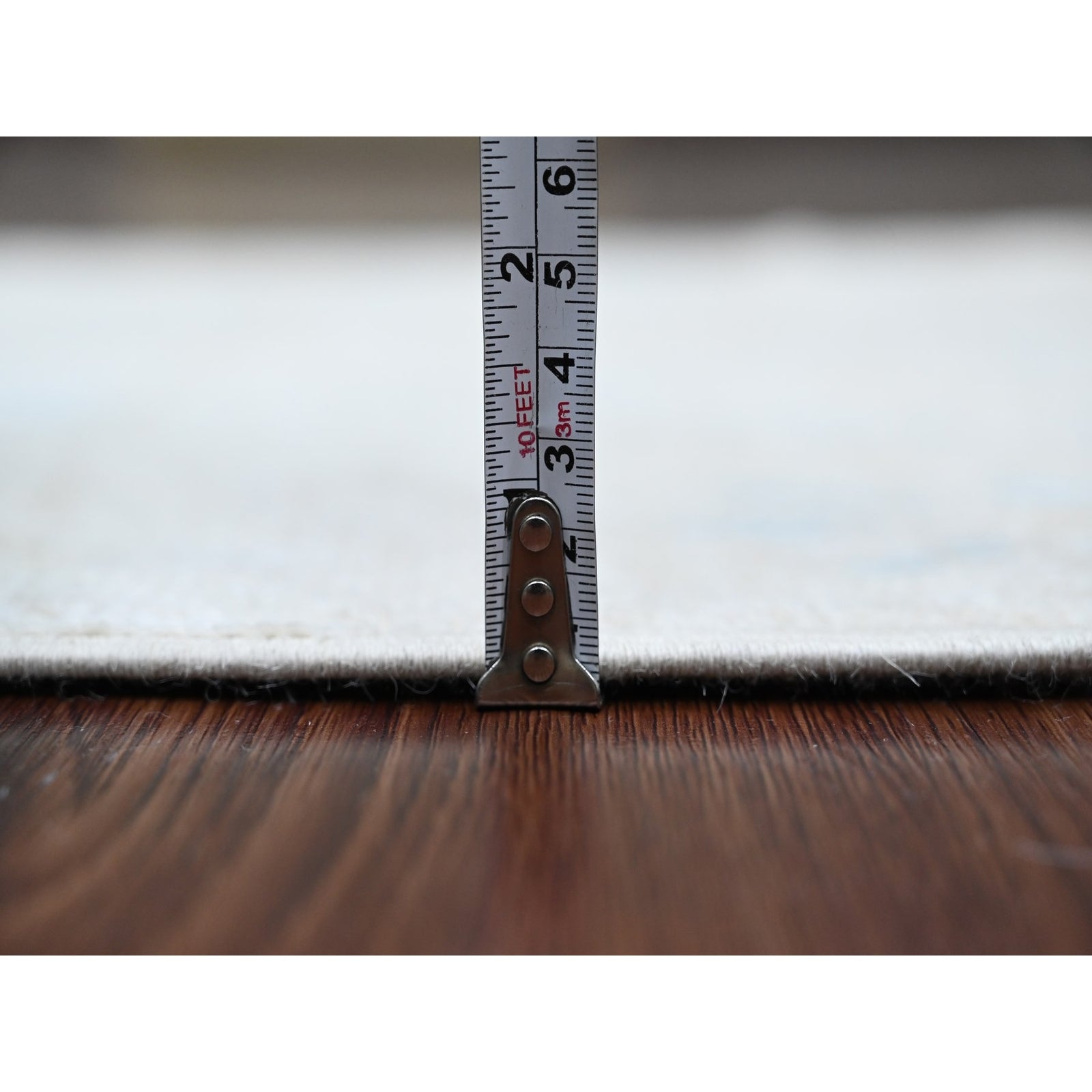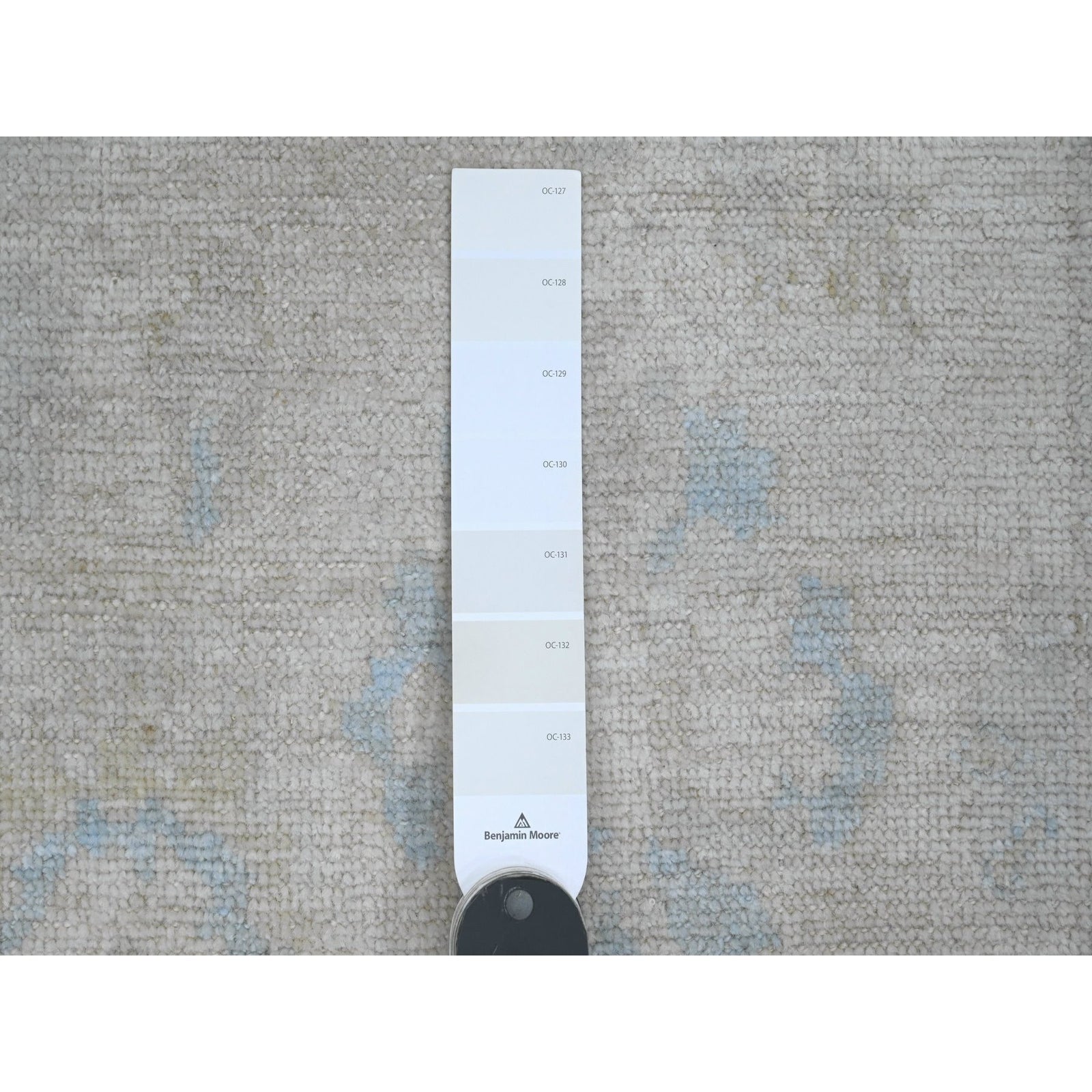 2'7"X9'10" White Angora Oushak Leaf Design Hand Knotted Wool Runner Rug