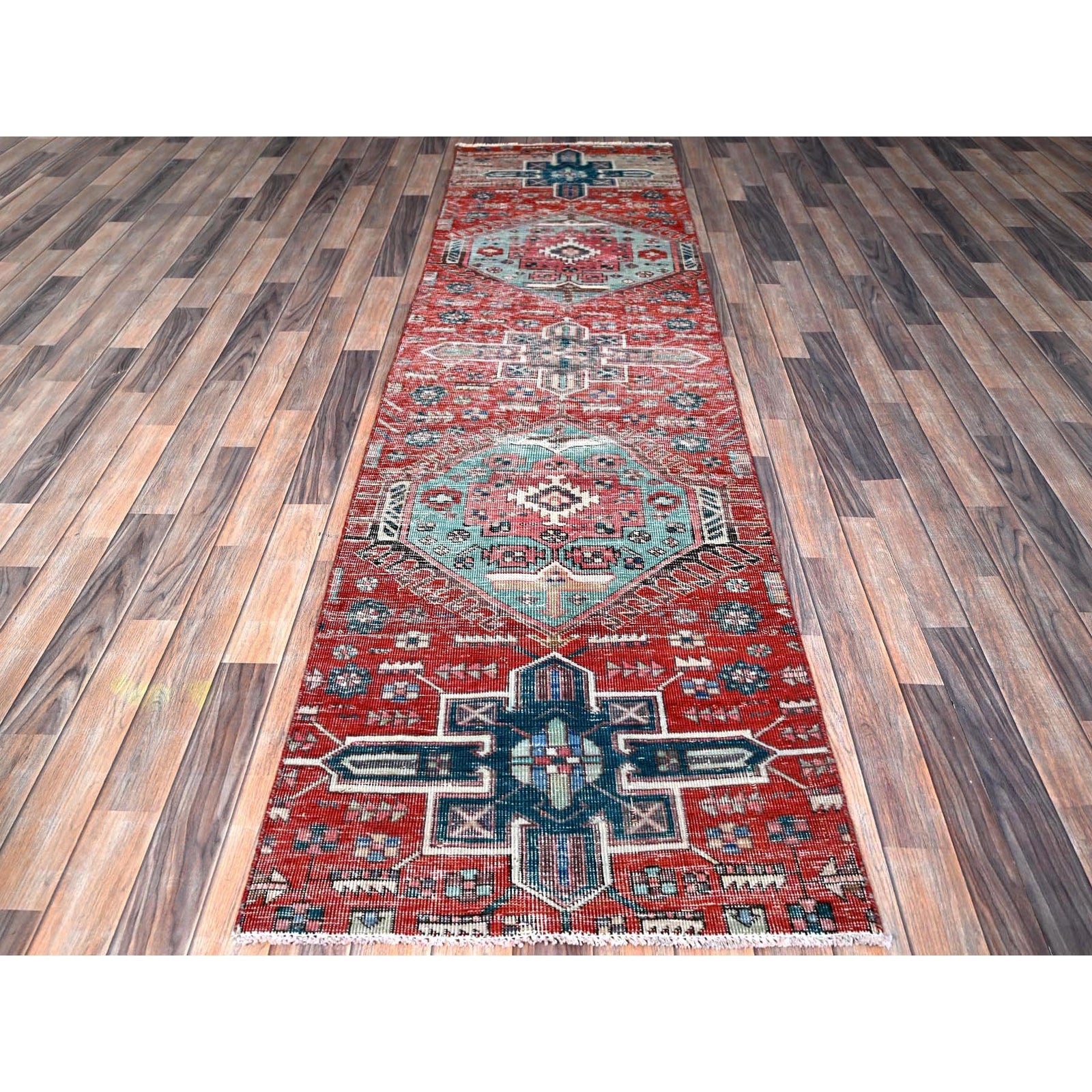 2'7"X9'3" Ajax Red Vintage Zoroastrian Hand Knotted Pure Wool Runner Rug