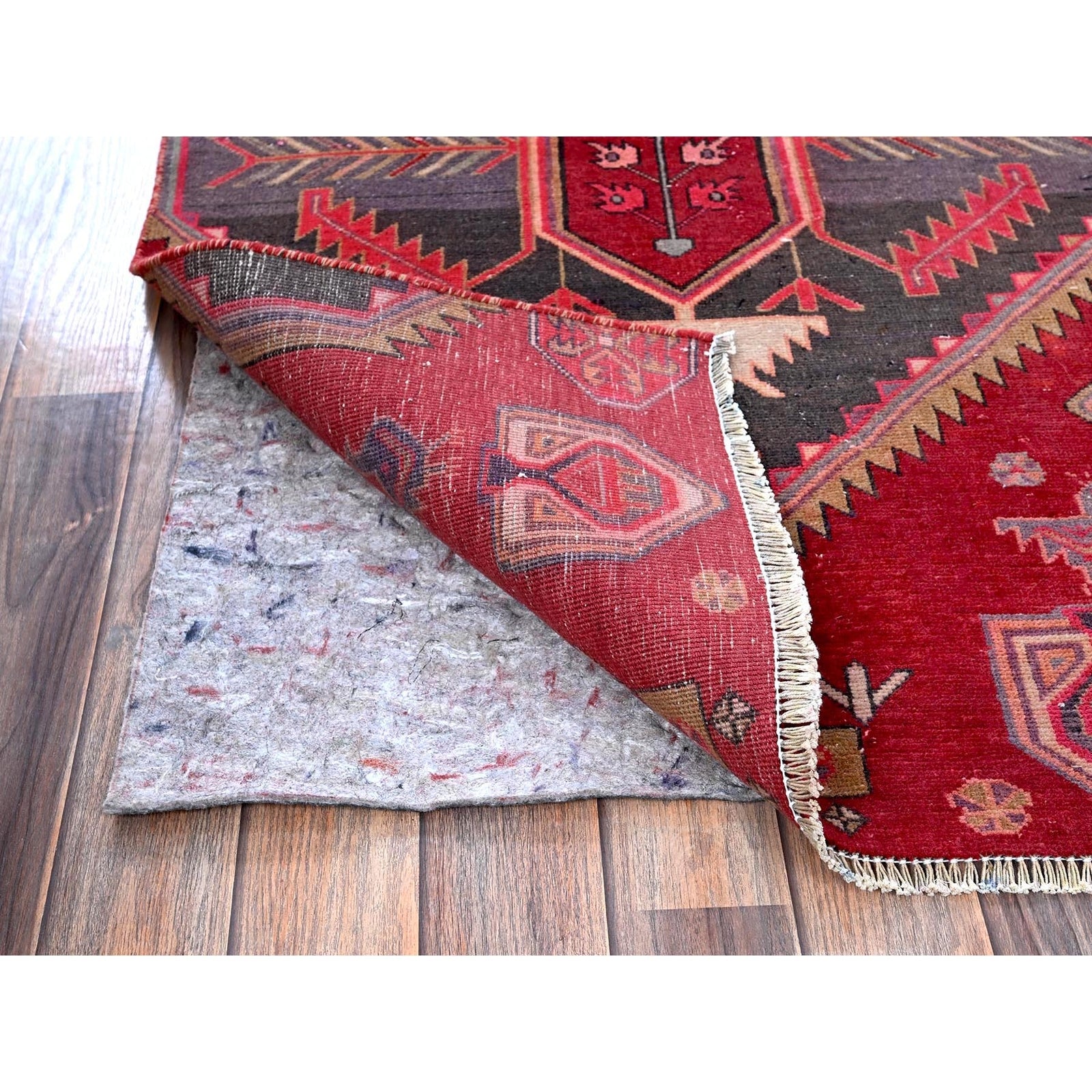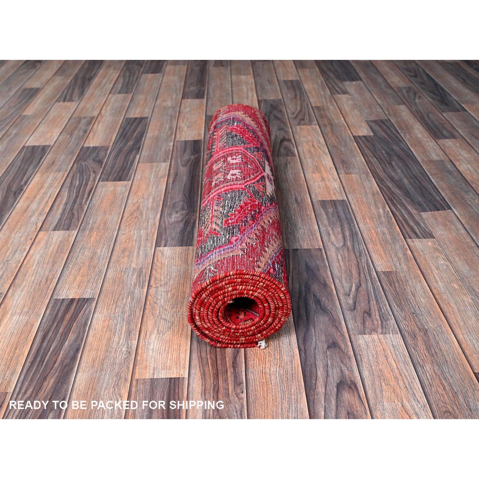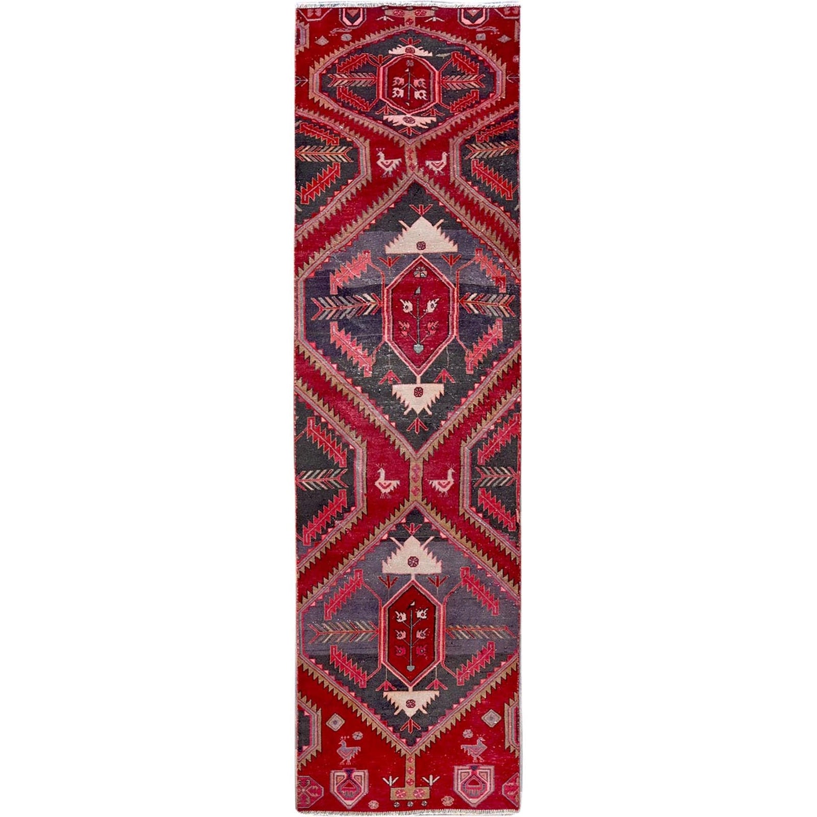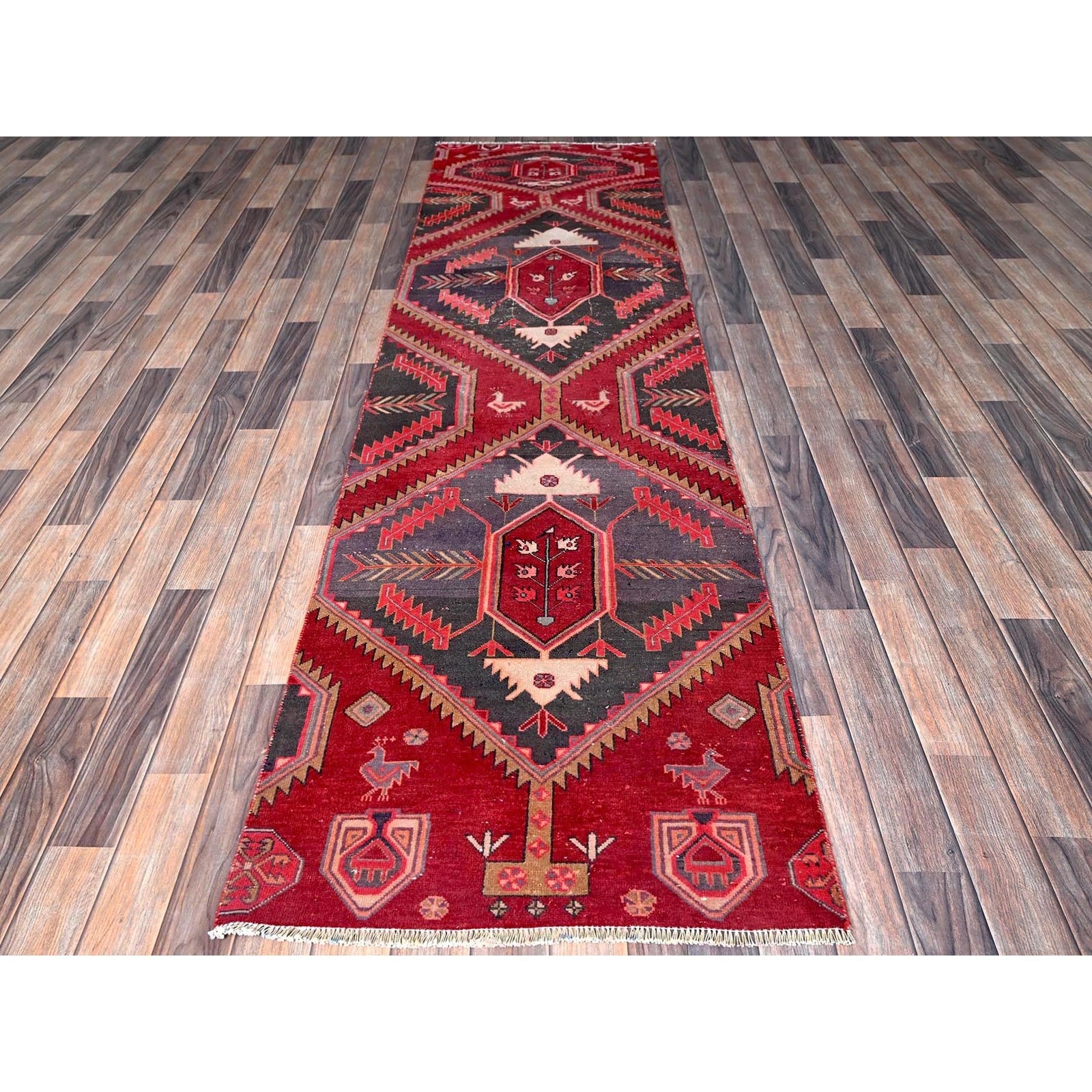 2'7"X9'5" Red Vintage Zoroastrian Khamadan Wool Hand Knotted Runner Rug