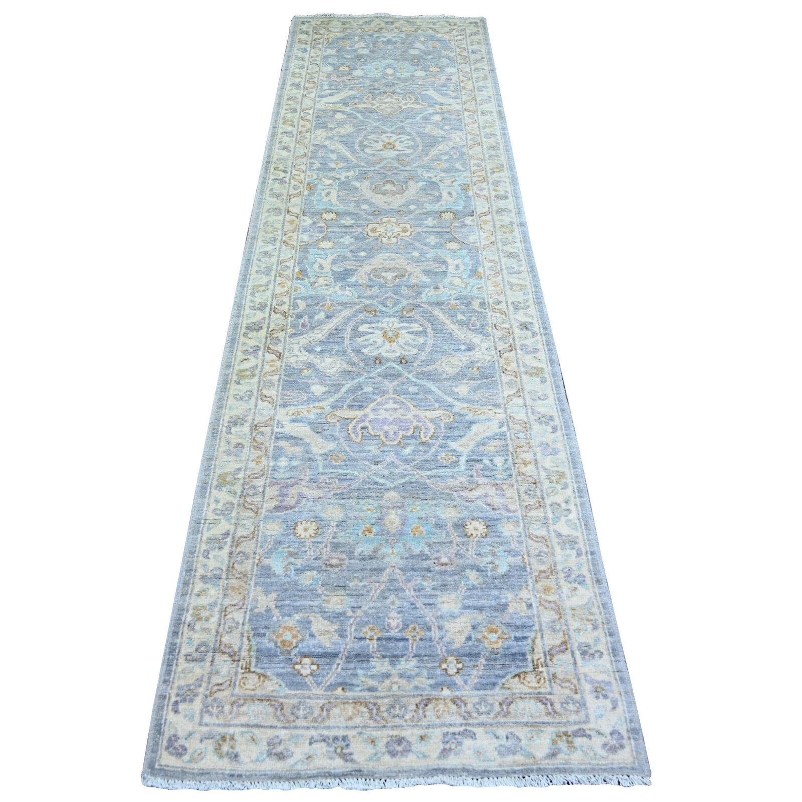 2'7"X9'6" Aegean Blue Finer Peshawar Wool Hand Knotted Runner Rug