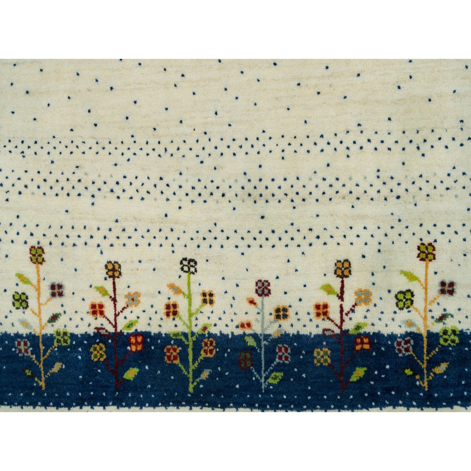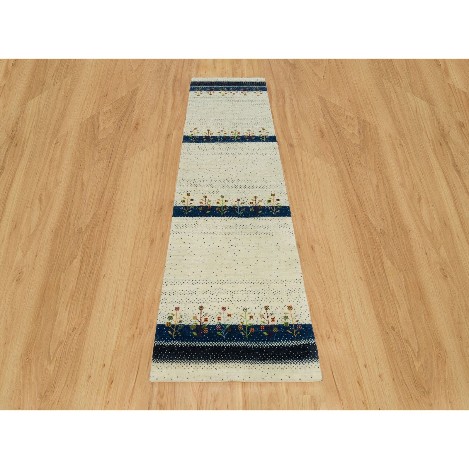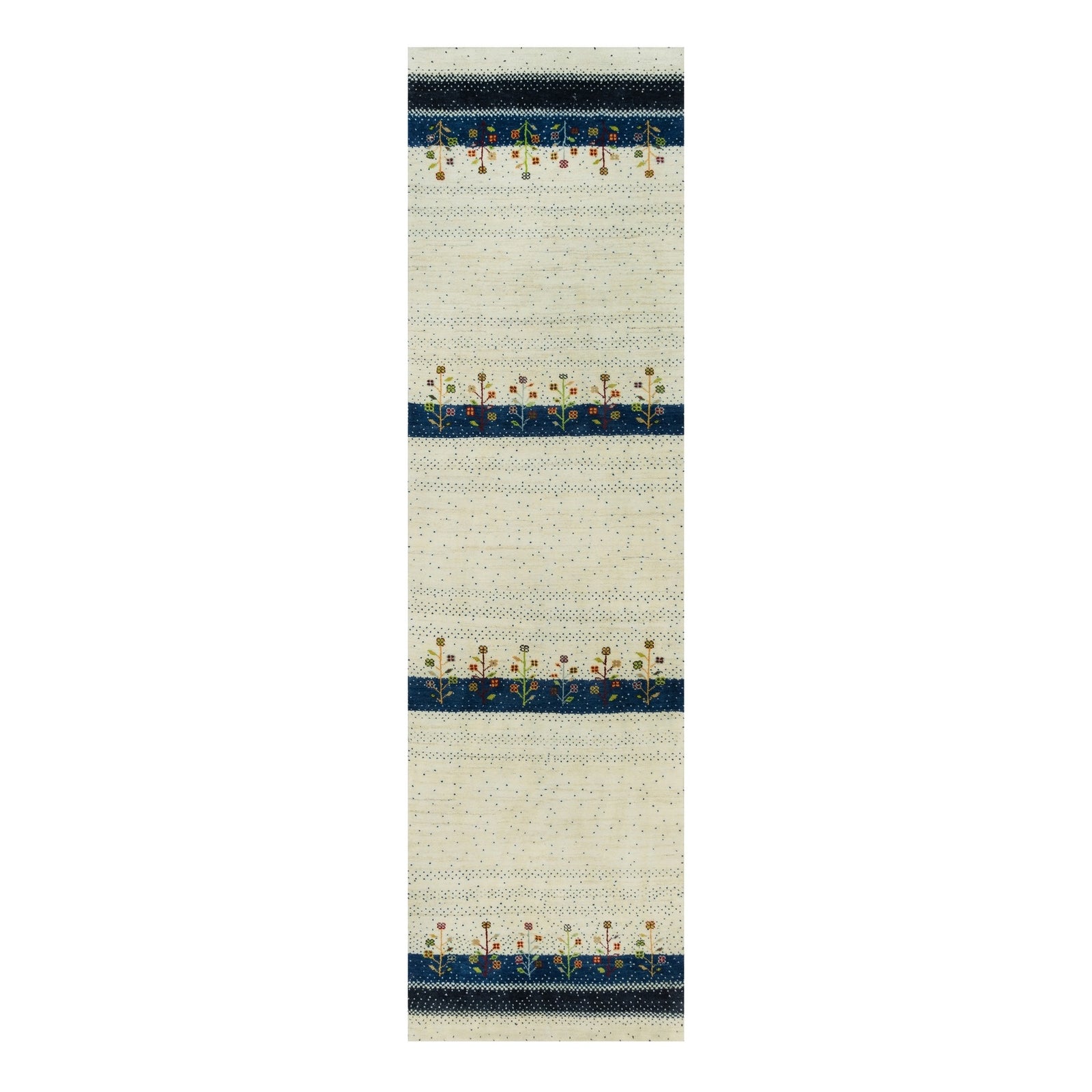 2'7"X9'6" Retro White Lori Buft Gabbeh Tree Design 100% Wool Runner Rug