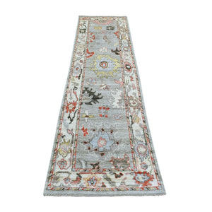 2'7"X9'8" Hand Knotted Gray Afghan Angora Oushak Pure Wool Oriental Rug