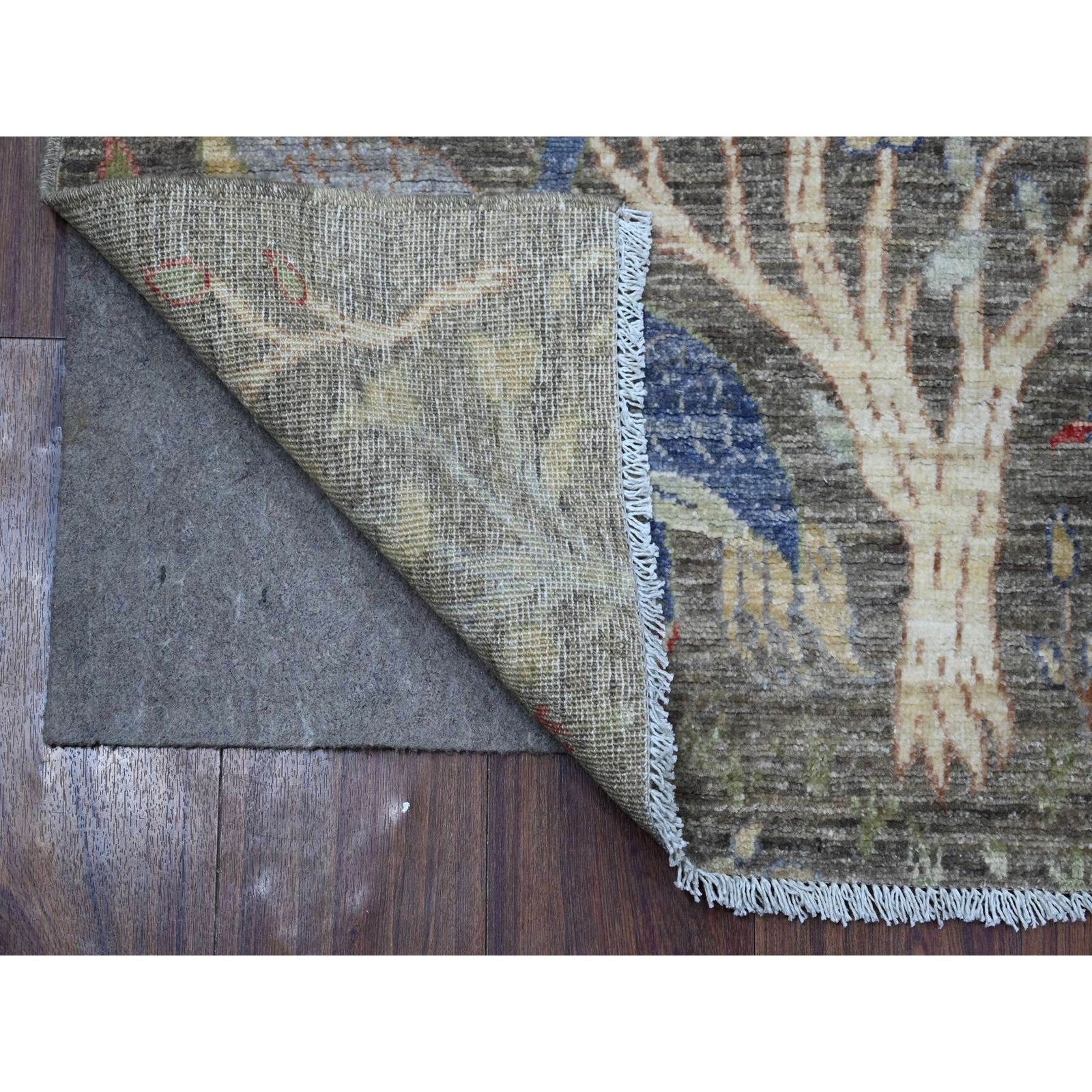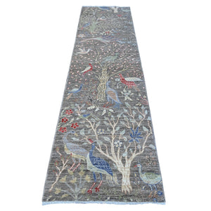 2'7"X9'8" Shingle Gray Birds Paradise Hand Knotted Runner Oriental Rug