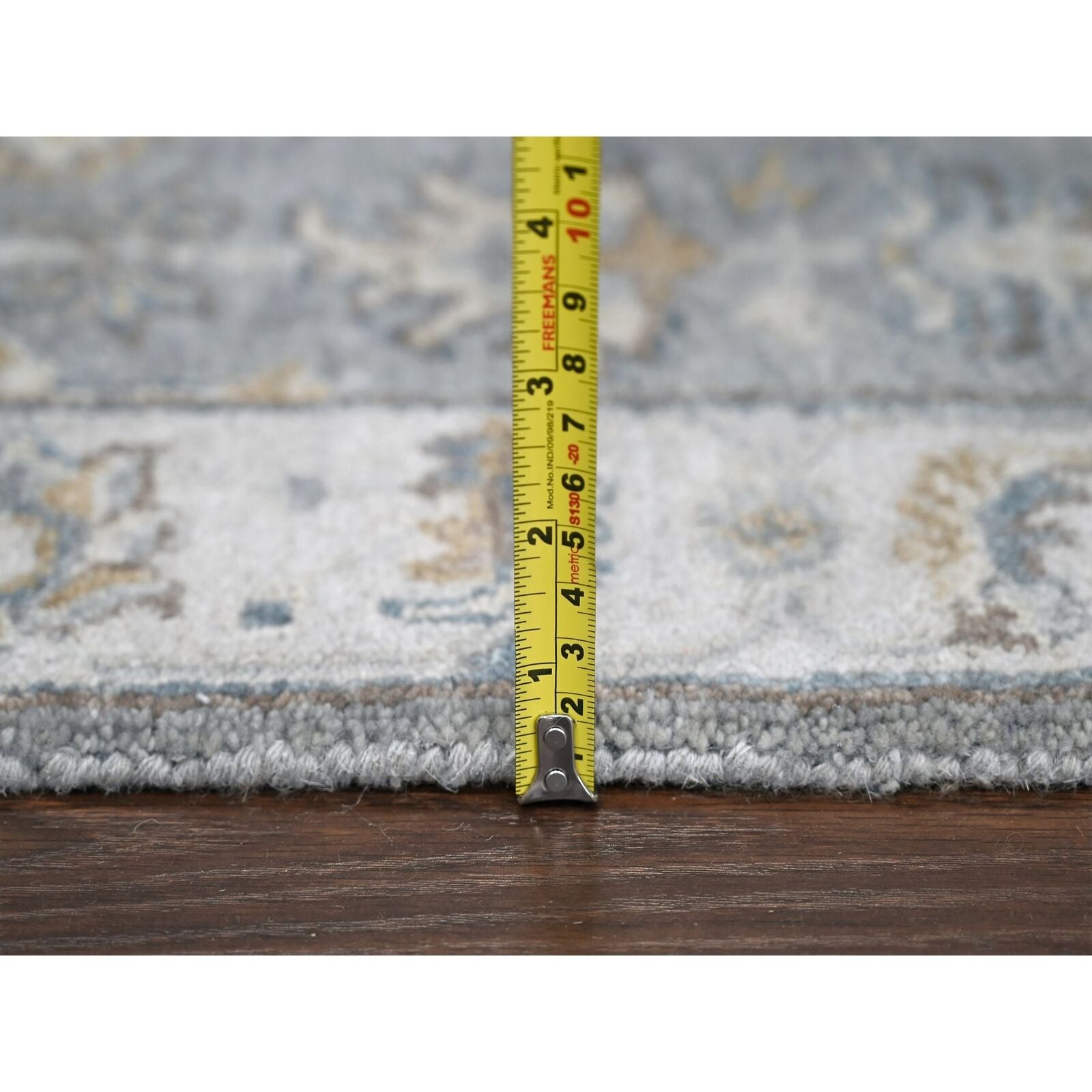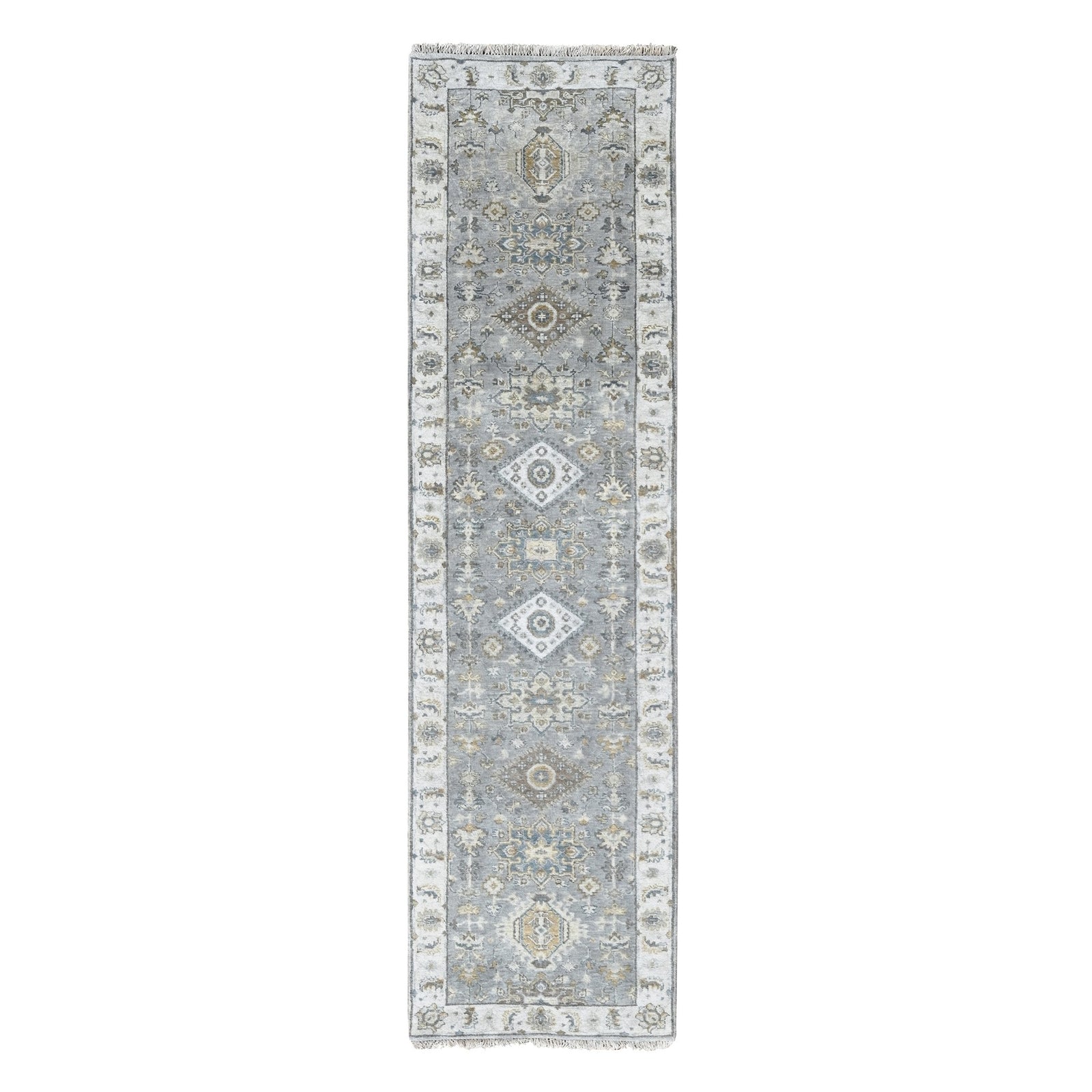 2'7"X9'9" Cloud Gray Pure Wool Karjihooz Design, Hand Knotted Runner Rug