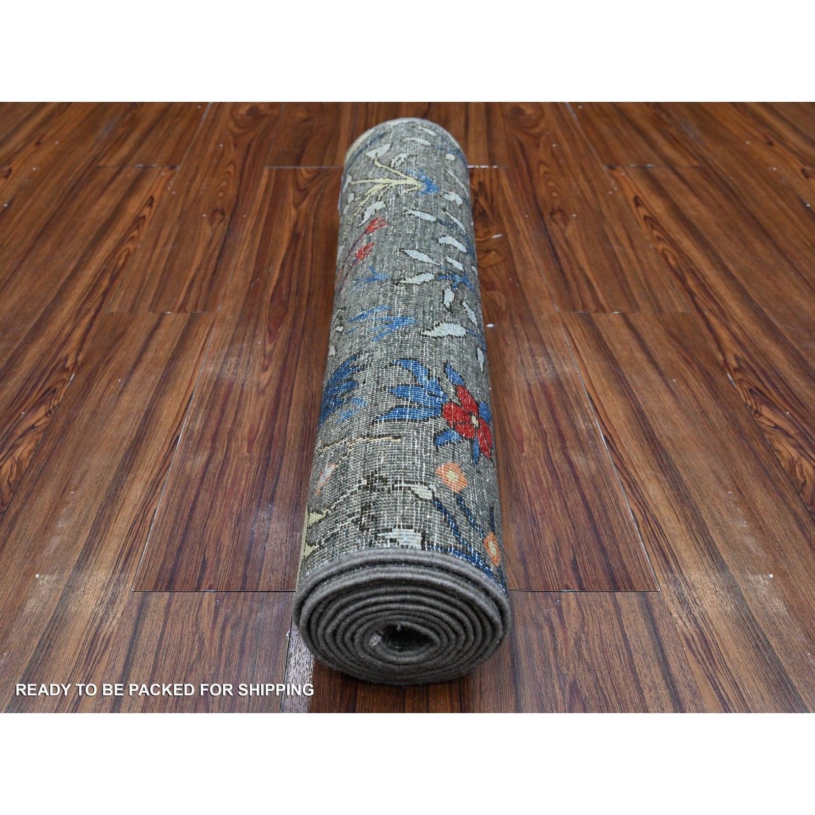 2'7"X9'9" Digital Gray Birds Paradise Hand Knotted Runner Peshawar Rug