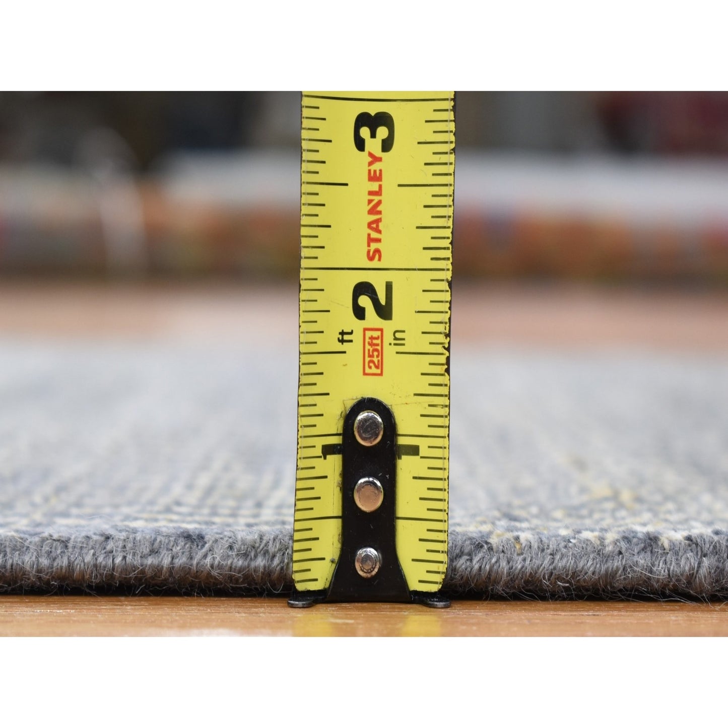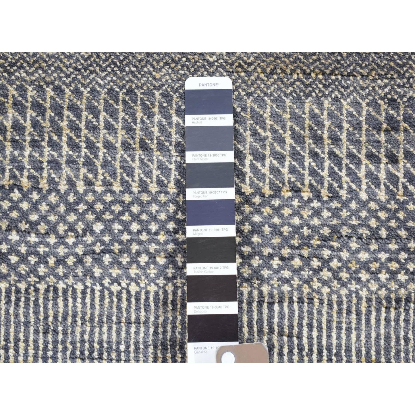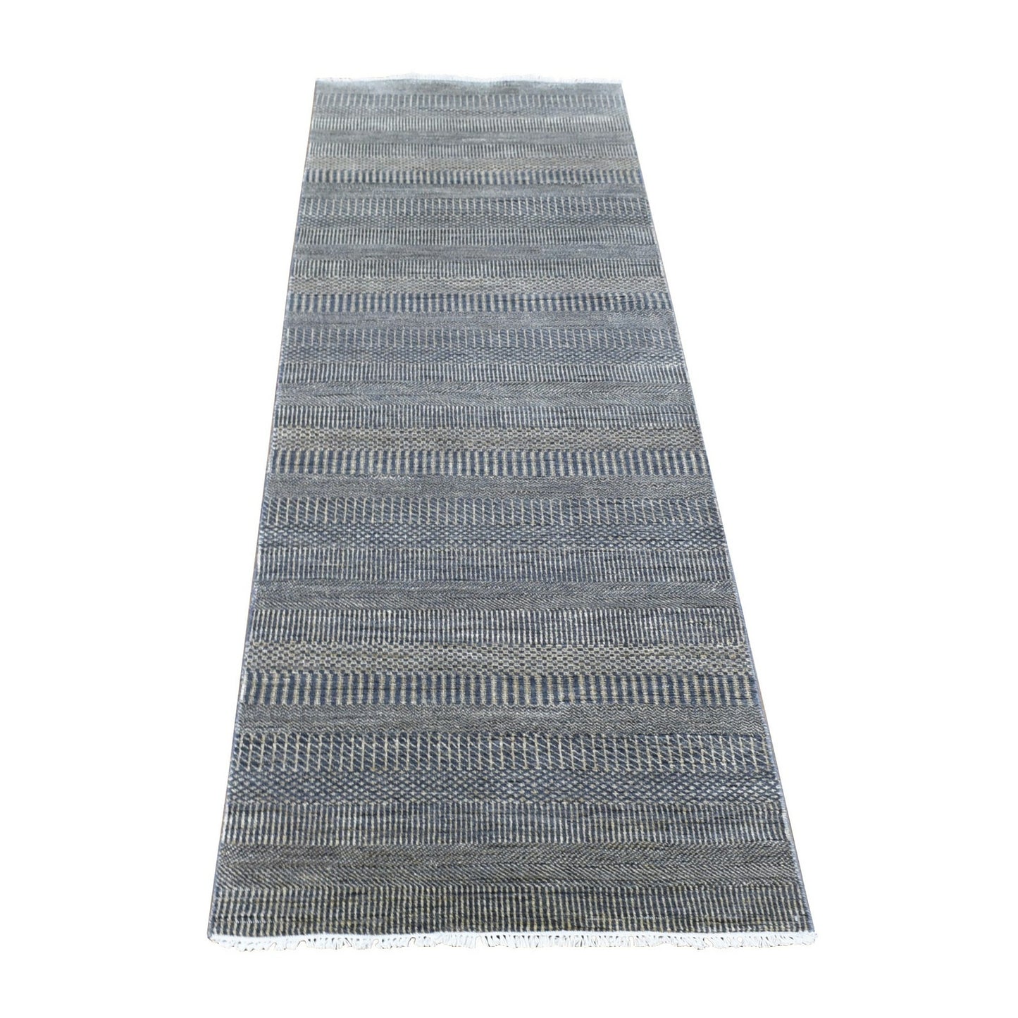 2'8"X10' Black Hand Knotted Wool And Silk Modern Grass Design Runner Rug