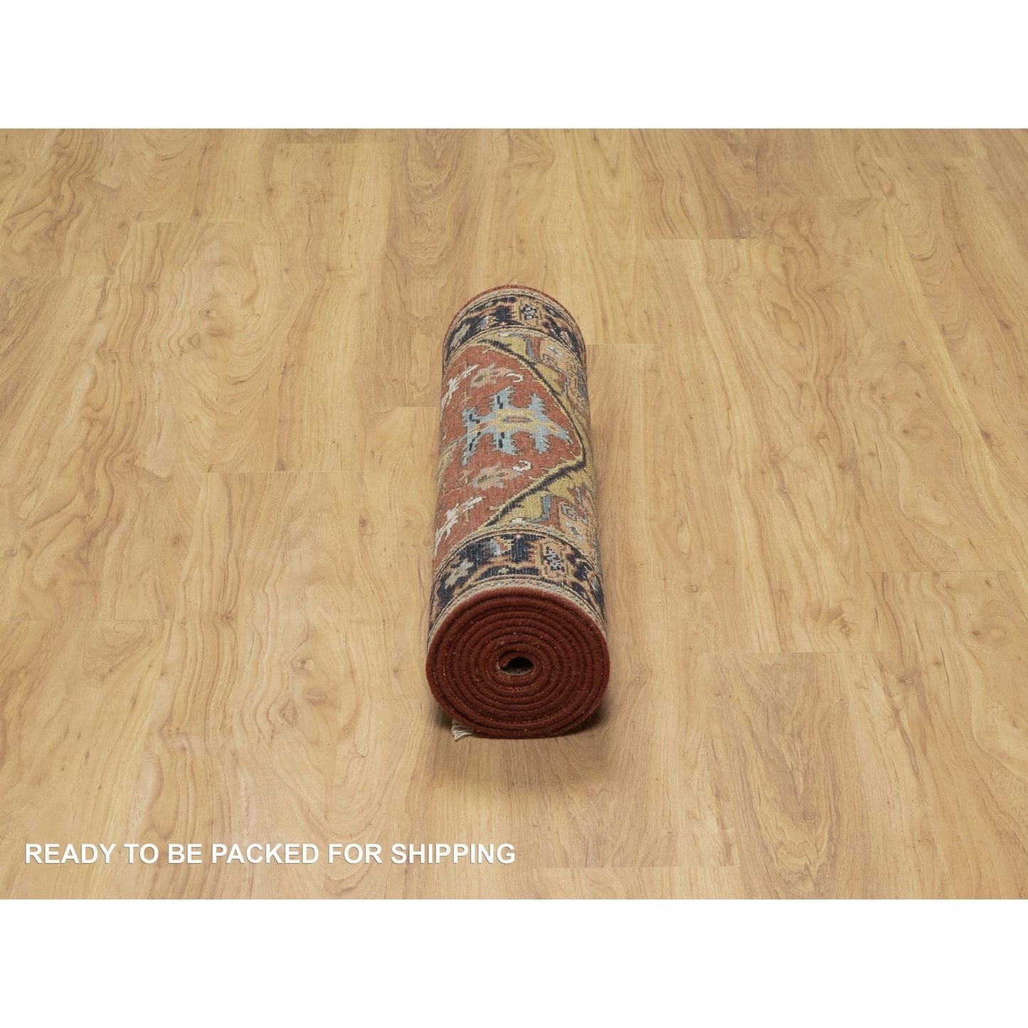 2'8"X10' Chili Red New Zealand Wool Heris Revival Hand Knotted Runner Rug