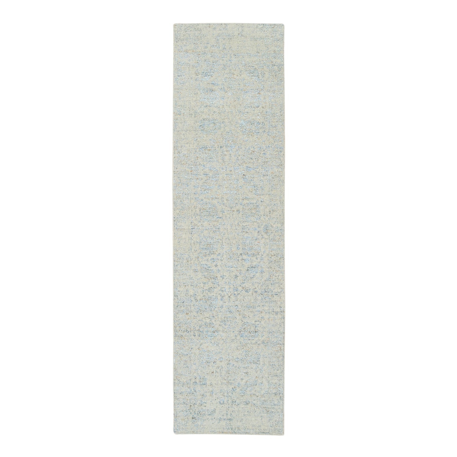 2'8"X10' Gray Tebraz Wool And Silk Jacquard Hand Loomed Runner Rug