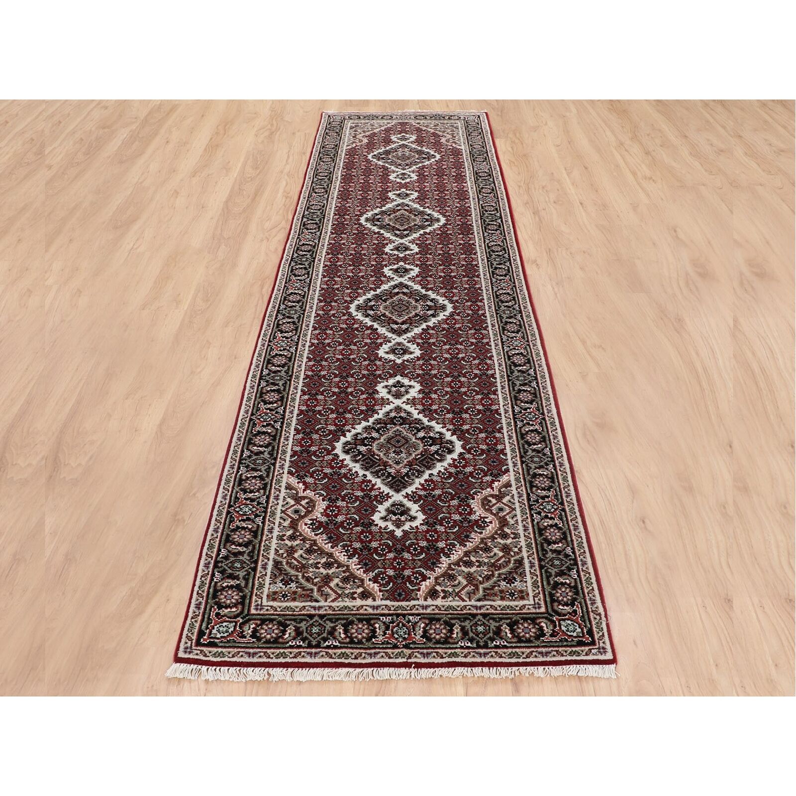 2'8"X10'2" Red Tebraz Mahi Fish Design Hand Knotted Runner Rug