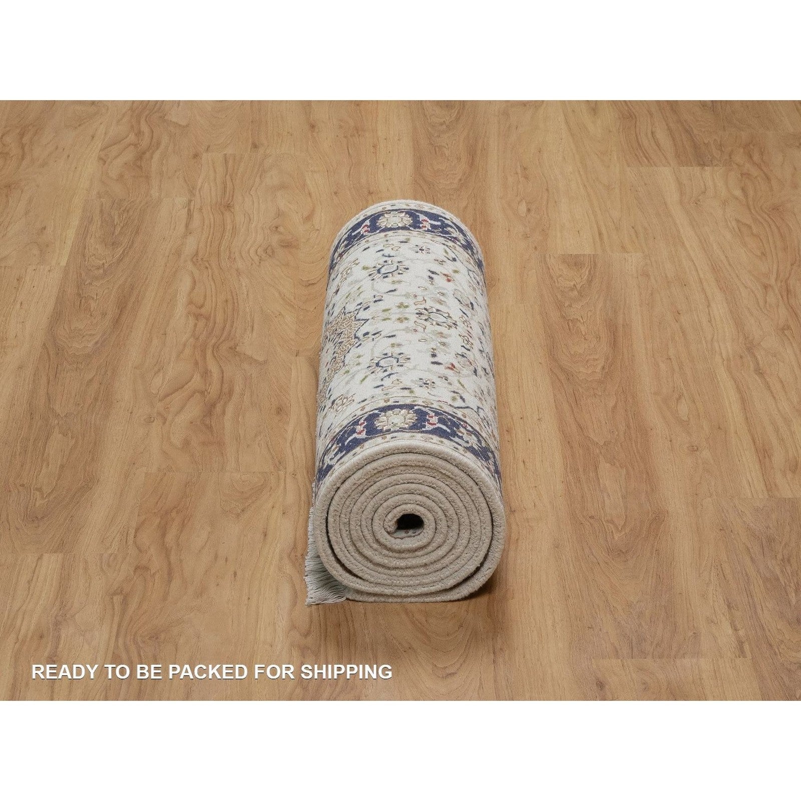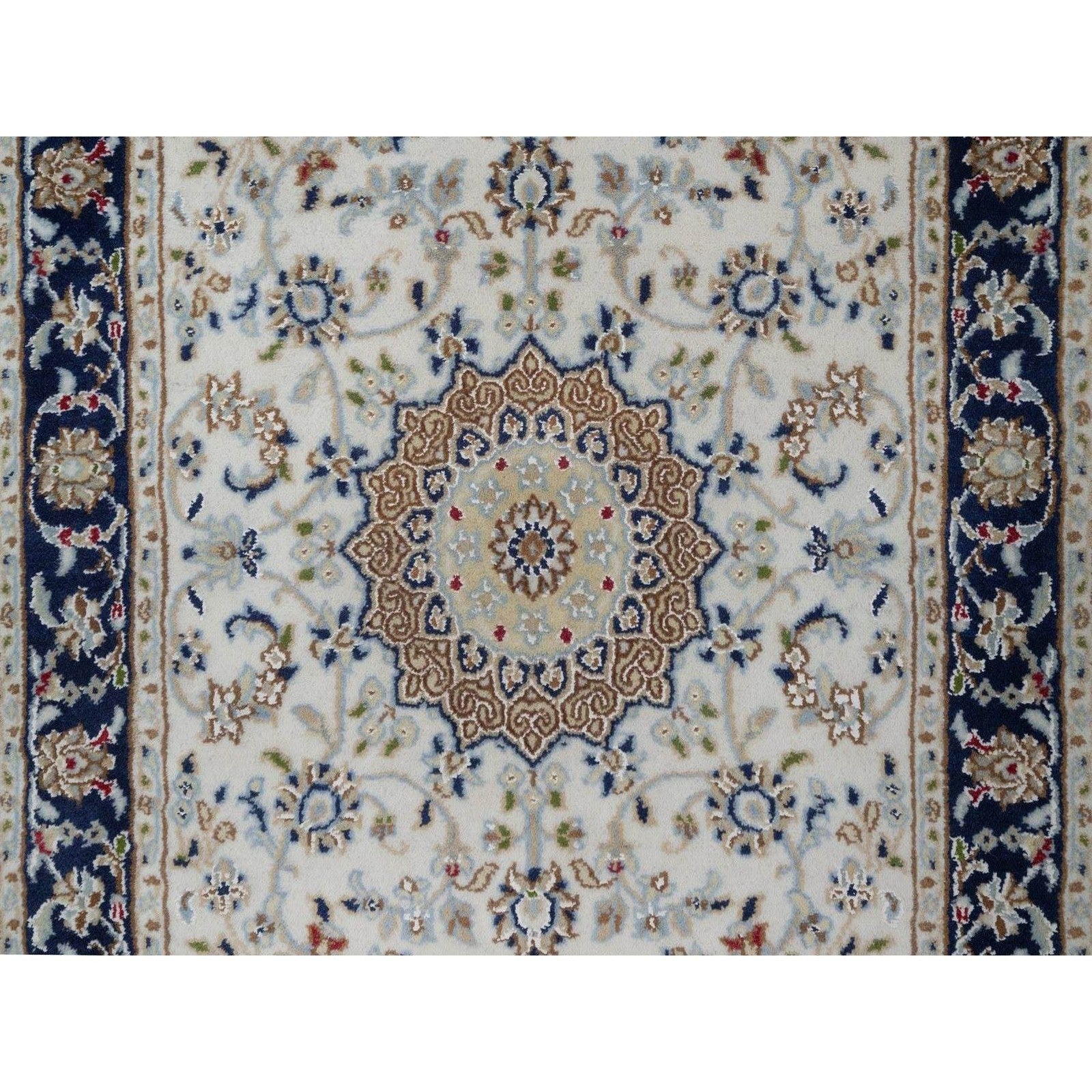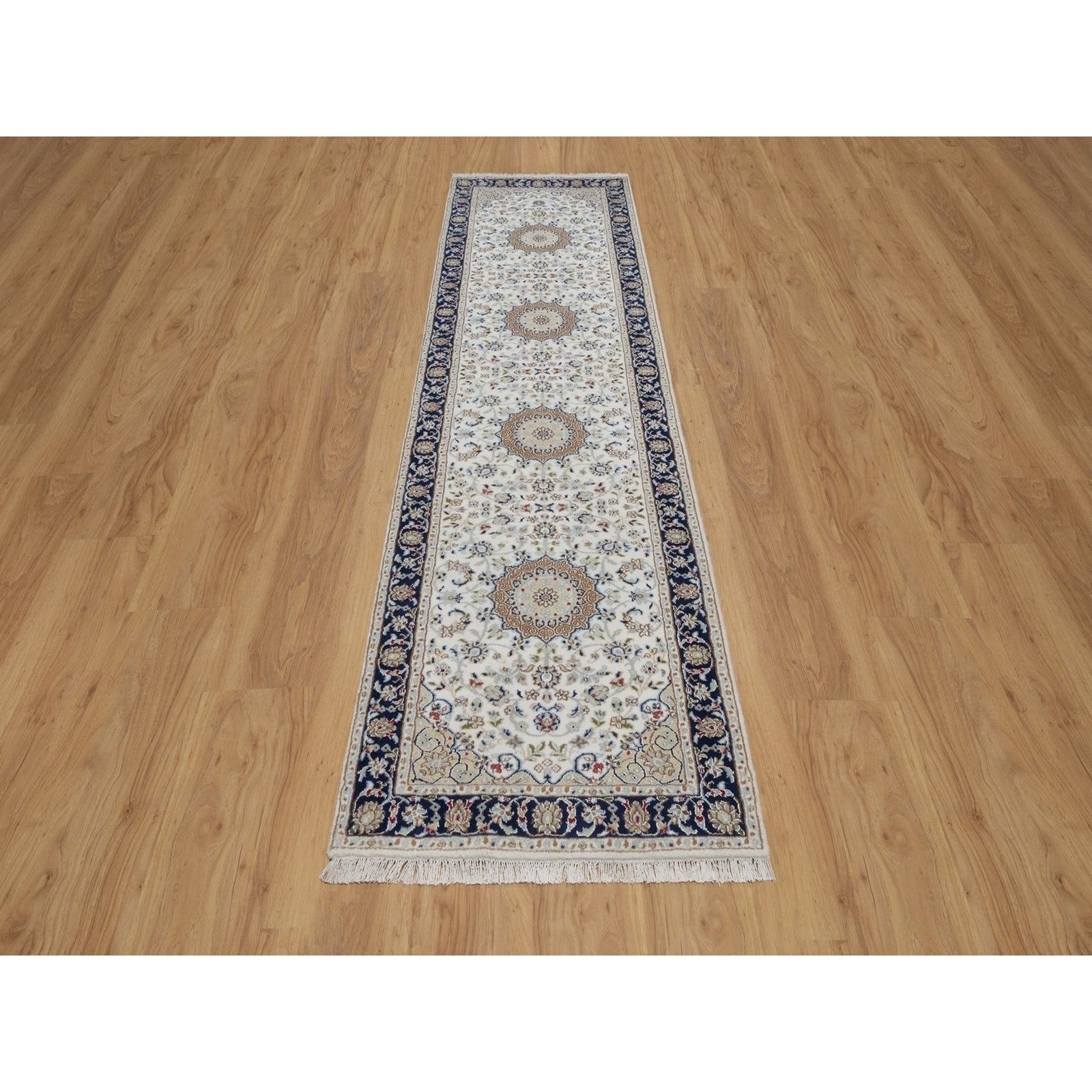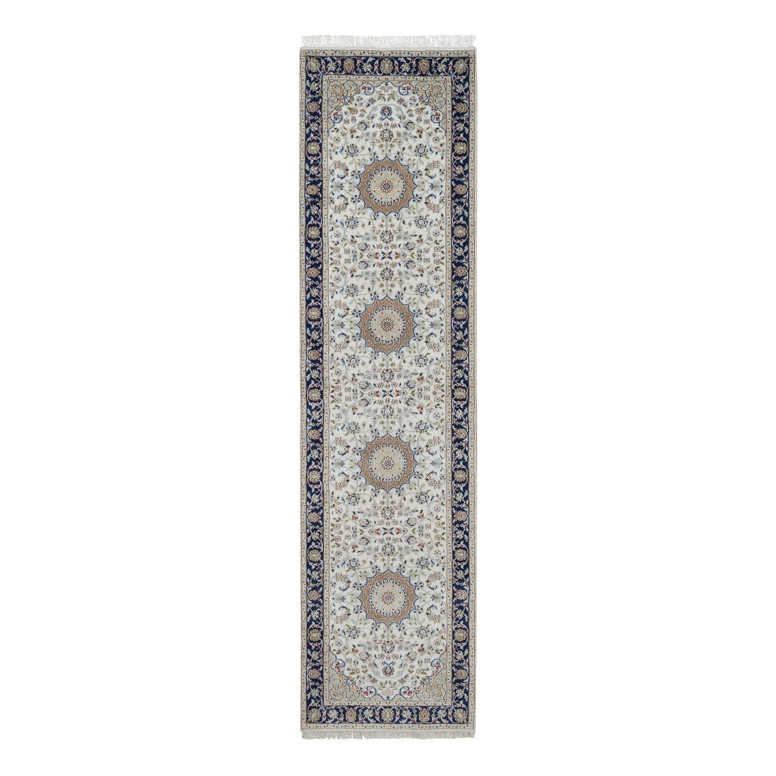2'8"X10'3" Ivory Nain Medallion Motif Wool & Silk Hand Knotted Runner Rug