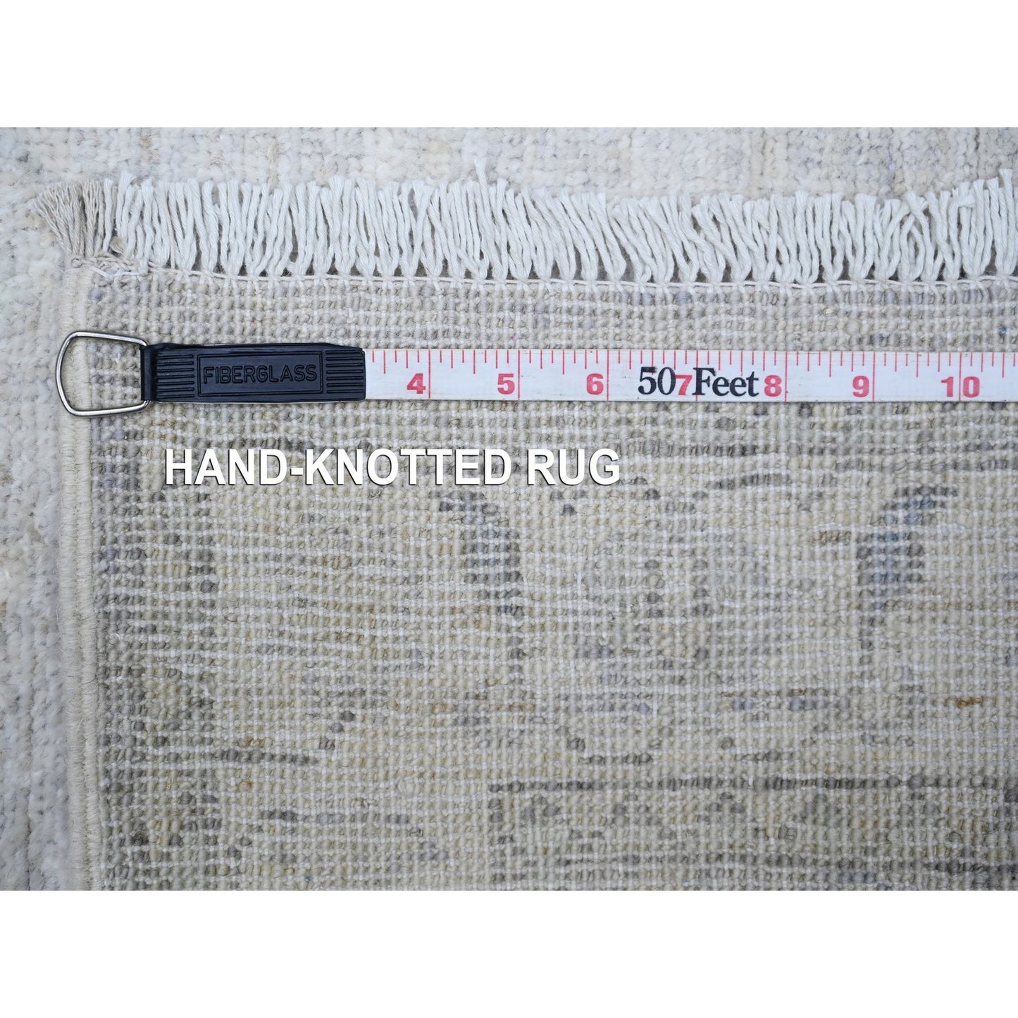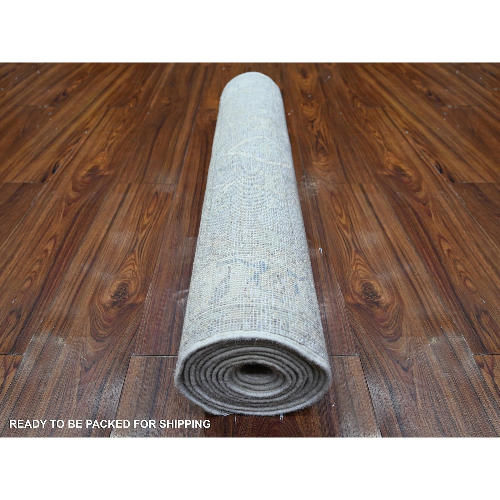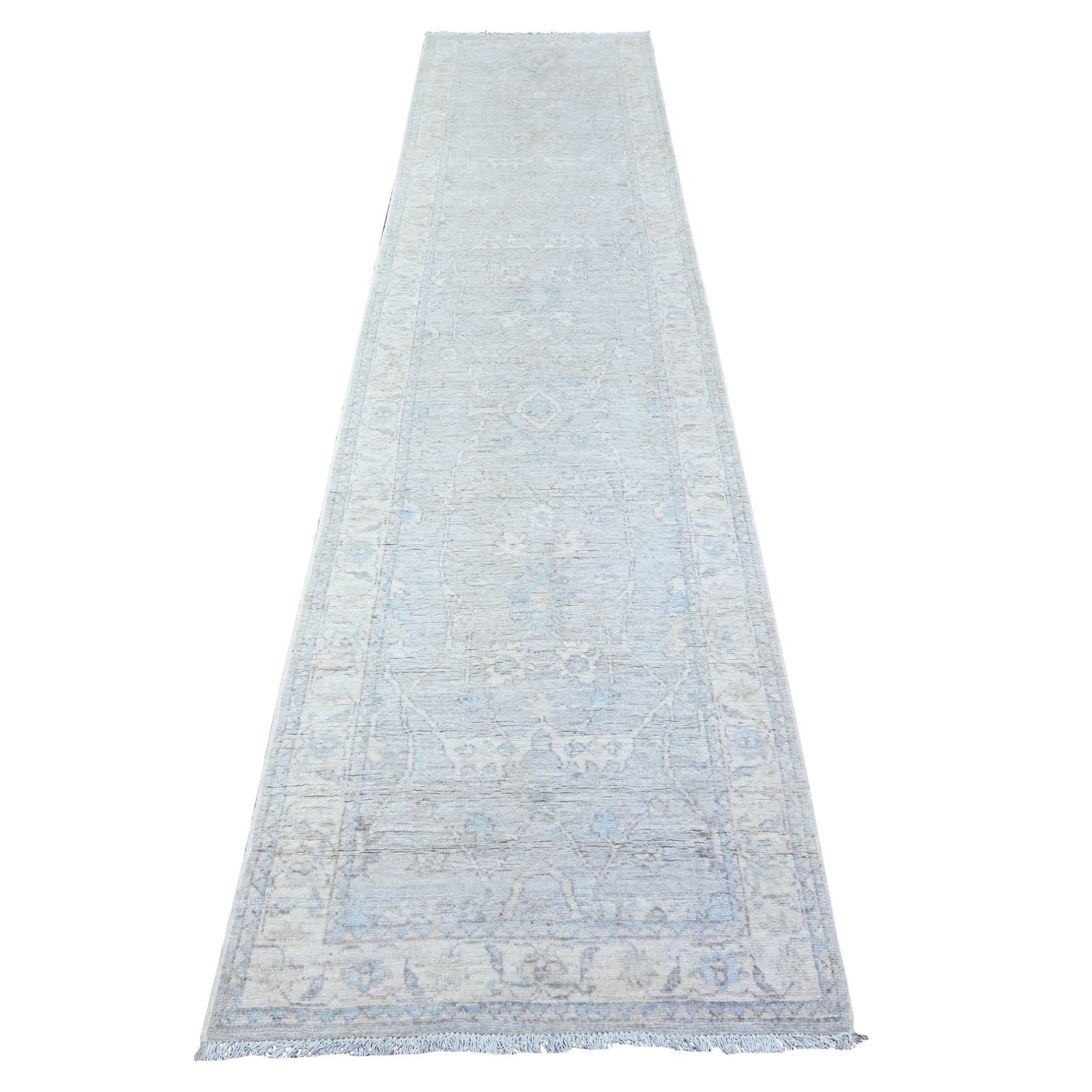 2'8"X11'6" Gray Natural Wool White Wash Peshawar Hand Knotted Runner Rug