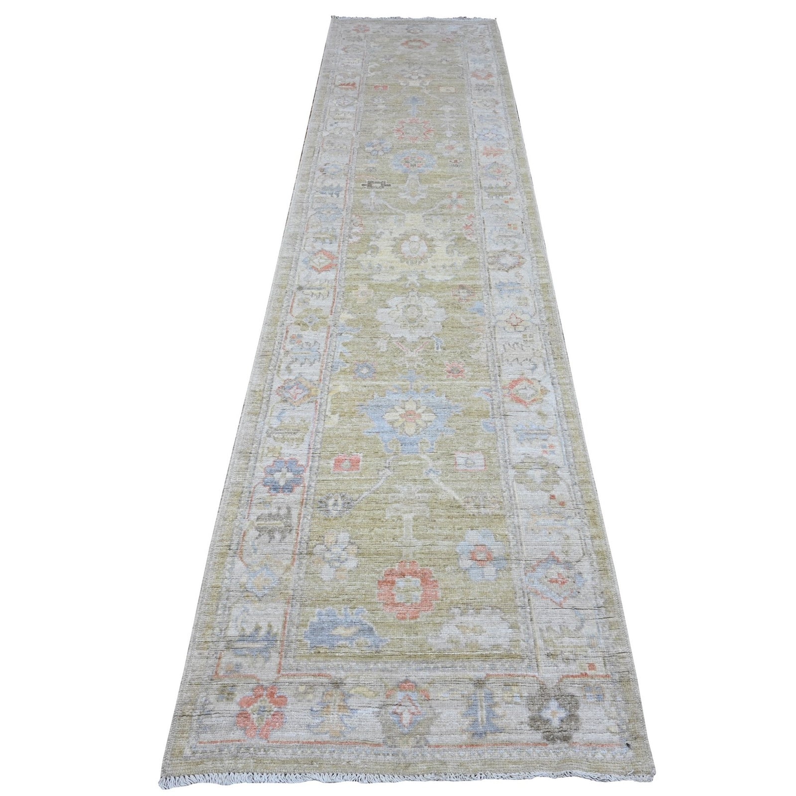 2'8"X11'6" Old Moss Green Rural Design Angora Oushak Oriental Runner Rug