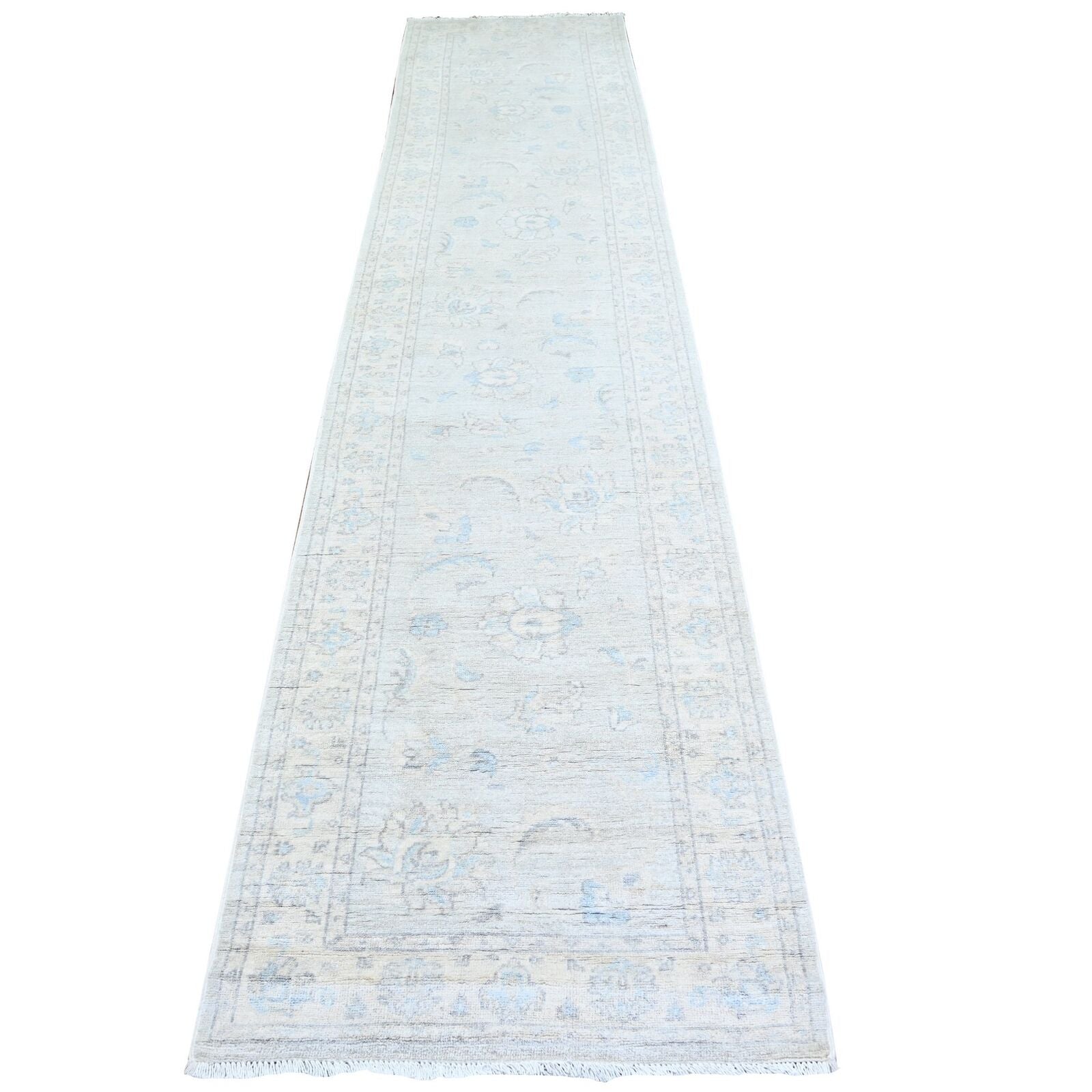 2'8"X12'2" Gray Peshawar Washed Out Faded Wool Hand Knotted Oriental Rug