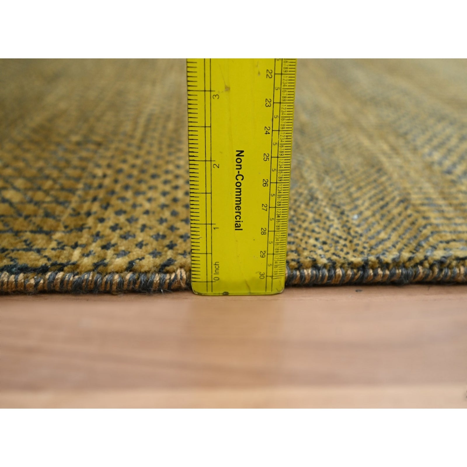 2'8"X12'3" Brown Modern Grass Design Hand Knotted Wool & Silk Runner Rug