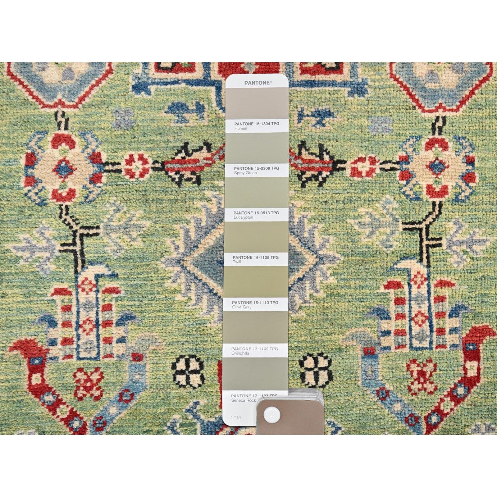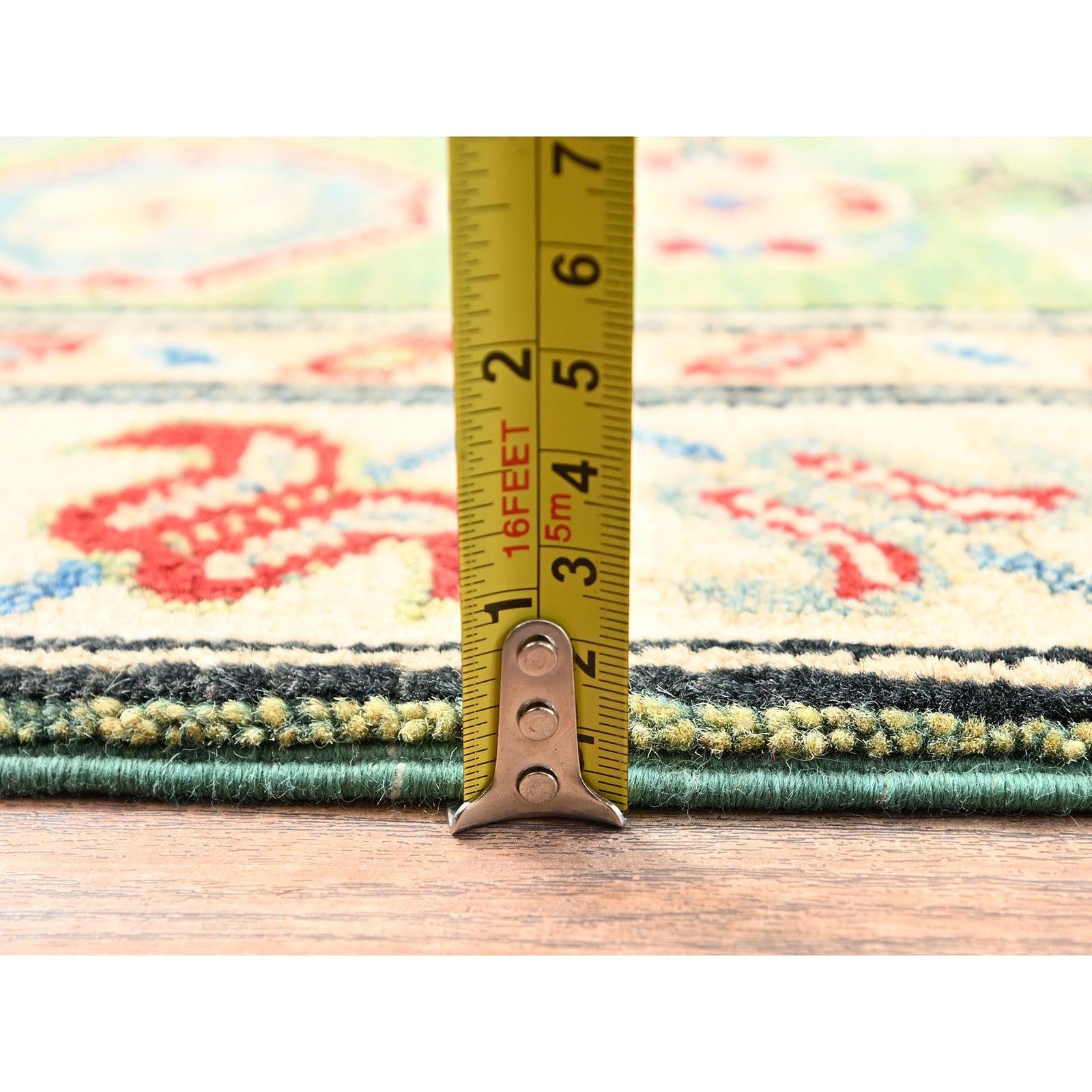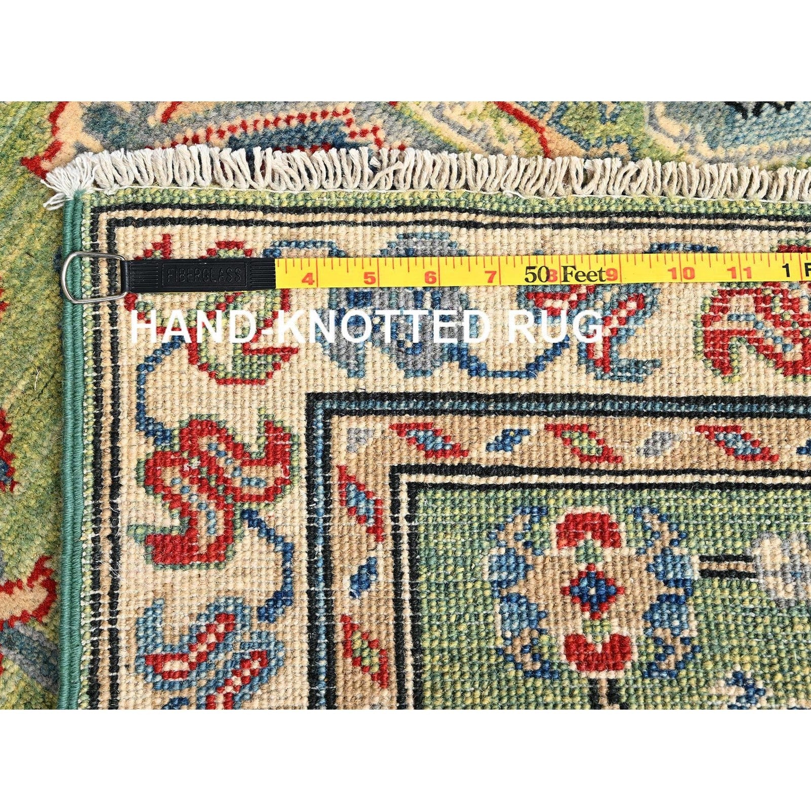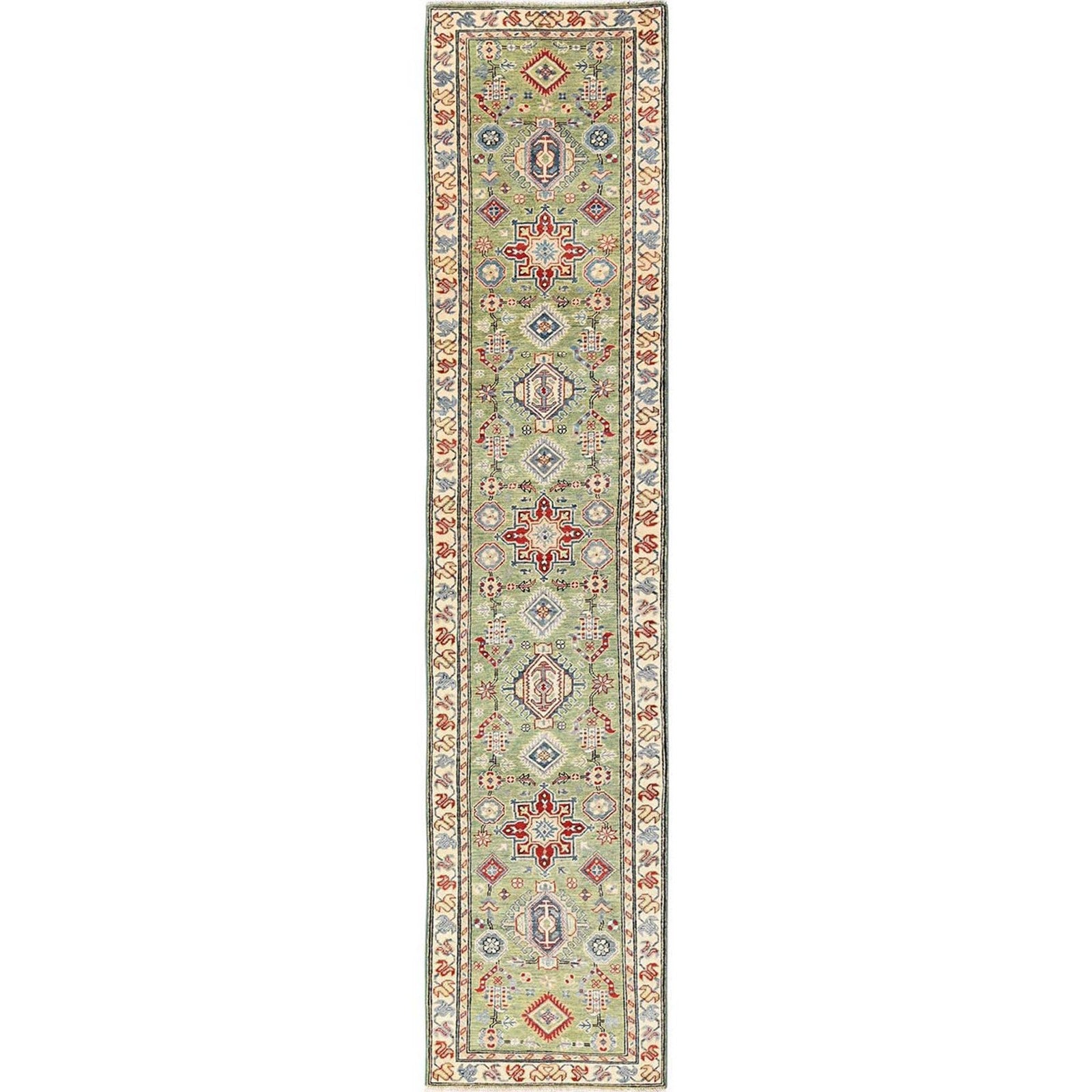 2'8"X13' Green Kazak Geometric Design Hand Knotted Rug Wool Runner