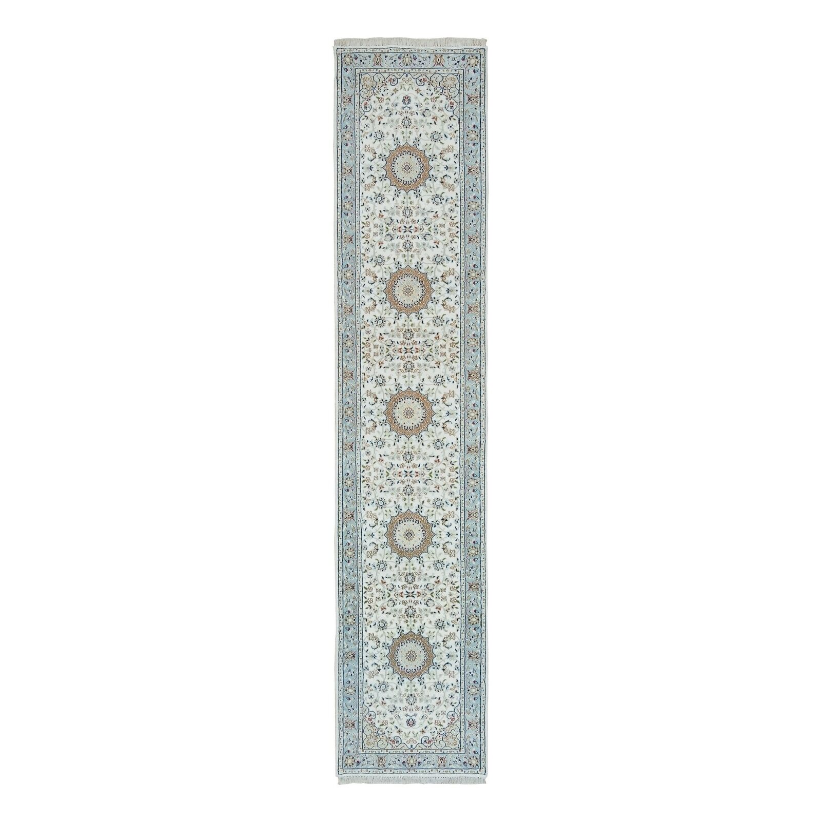 2'8"X13' White Hand Knotted Nain Design 250 Kpsi Organic Wool Runner Rug