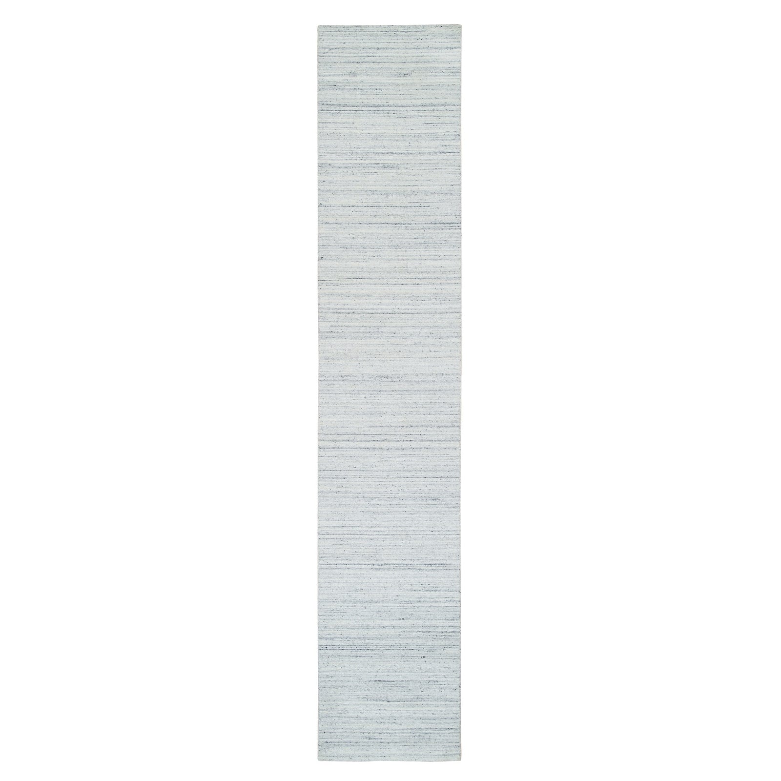 2'8"X13'10" Ivory Wool Hand Loomed Modern Striae Runner Oriental Rug