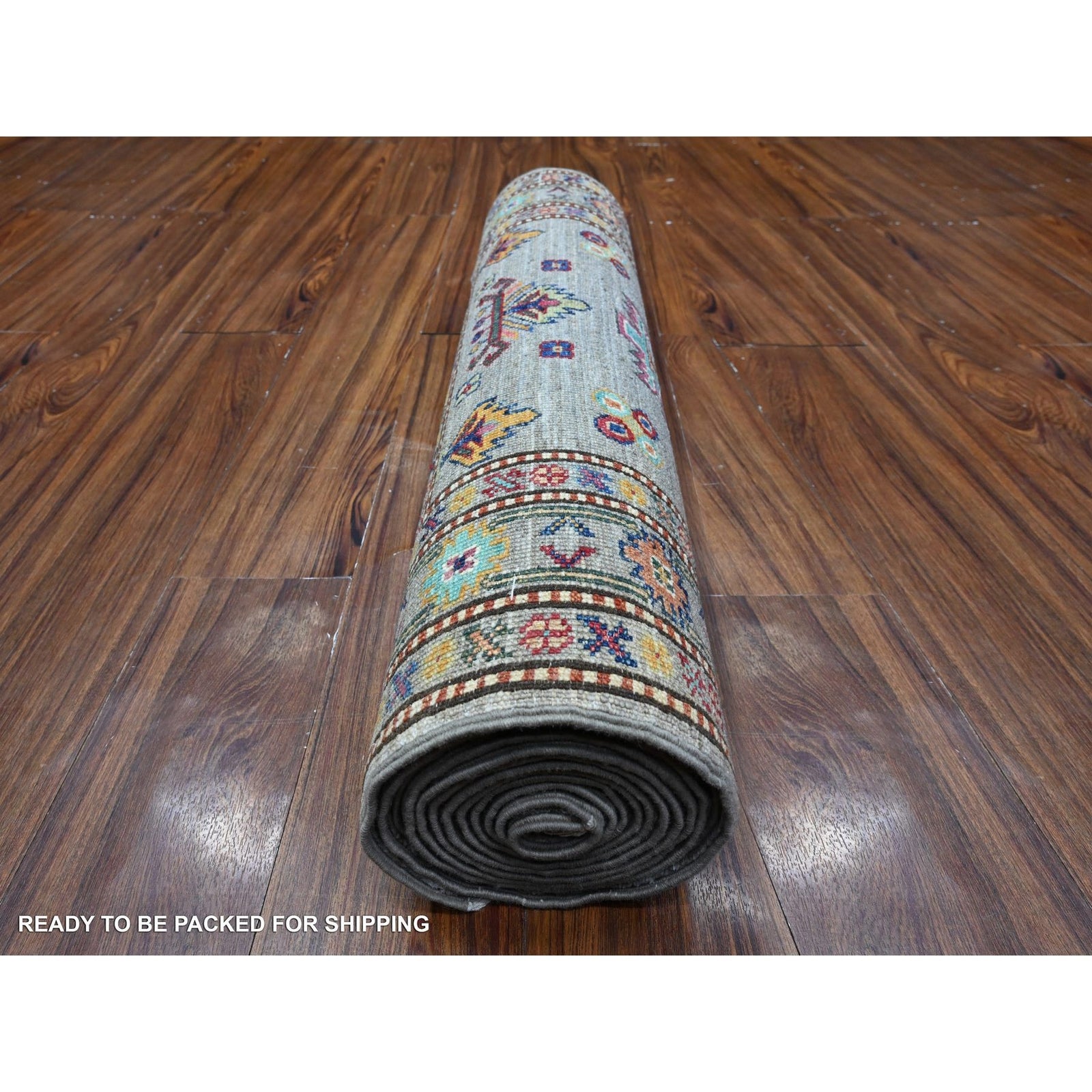 2'8"X13'2" Gray Hand Knotted Super Kazak Colorful Medallions Runner Rug