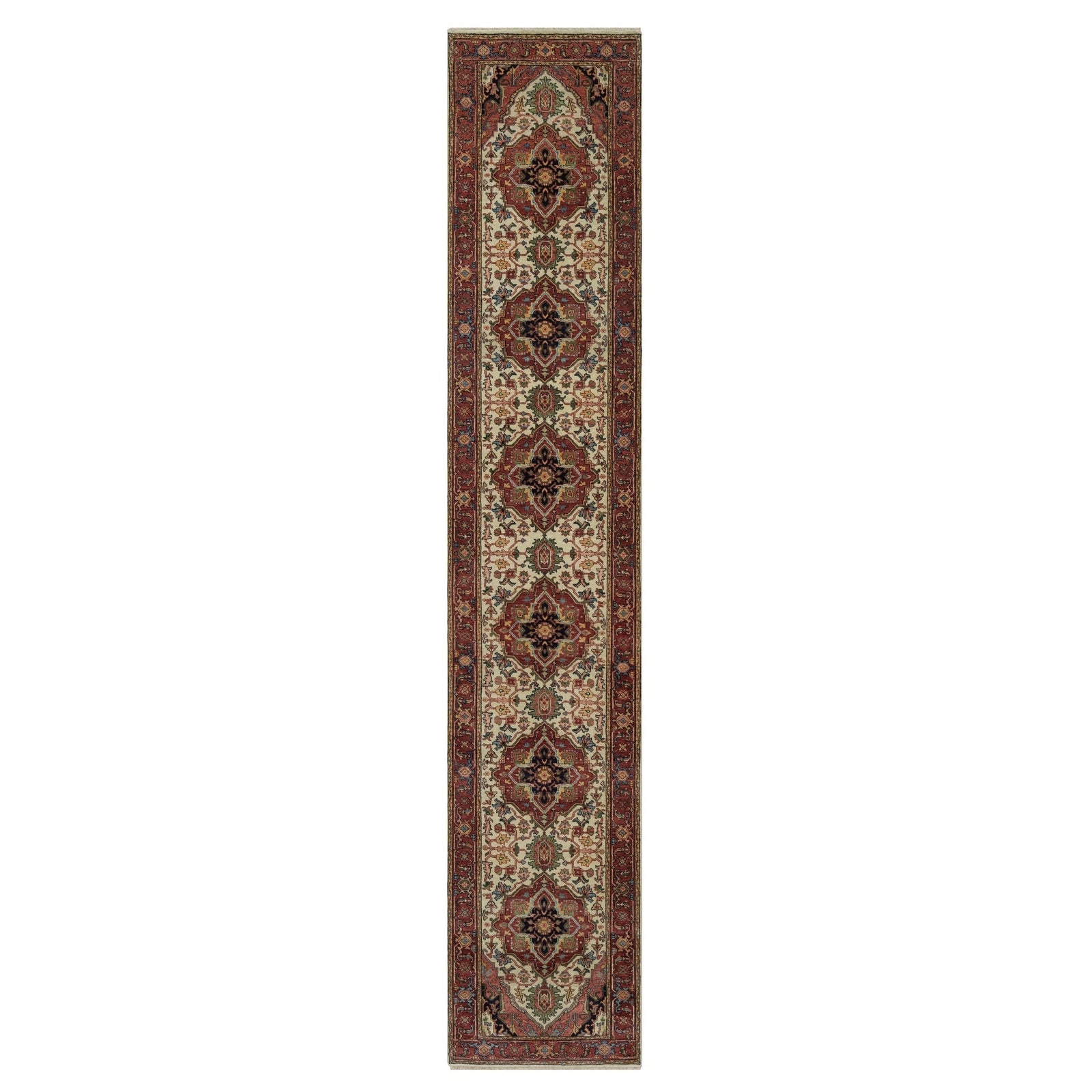 2'8"X14'3" Ivory Antiqued Heris Re-Creation Hand Knotted Wool Runner Rug