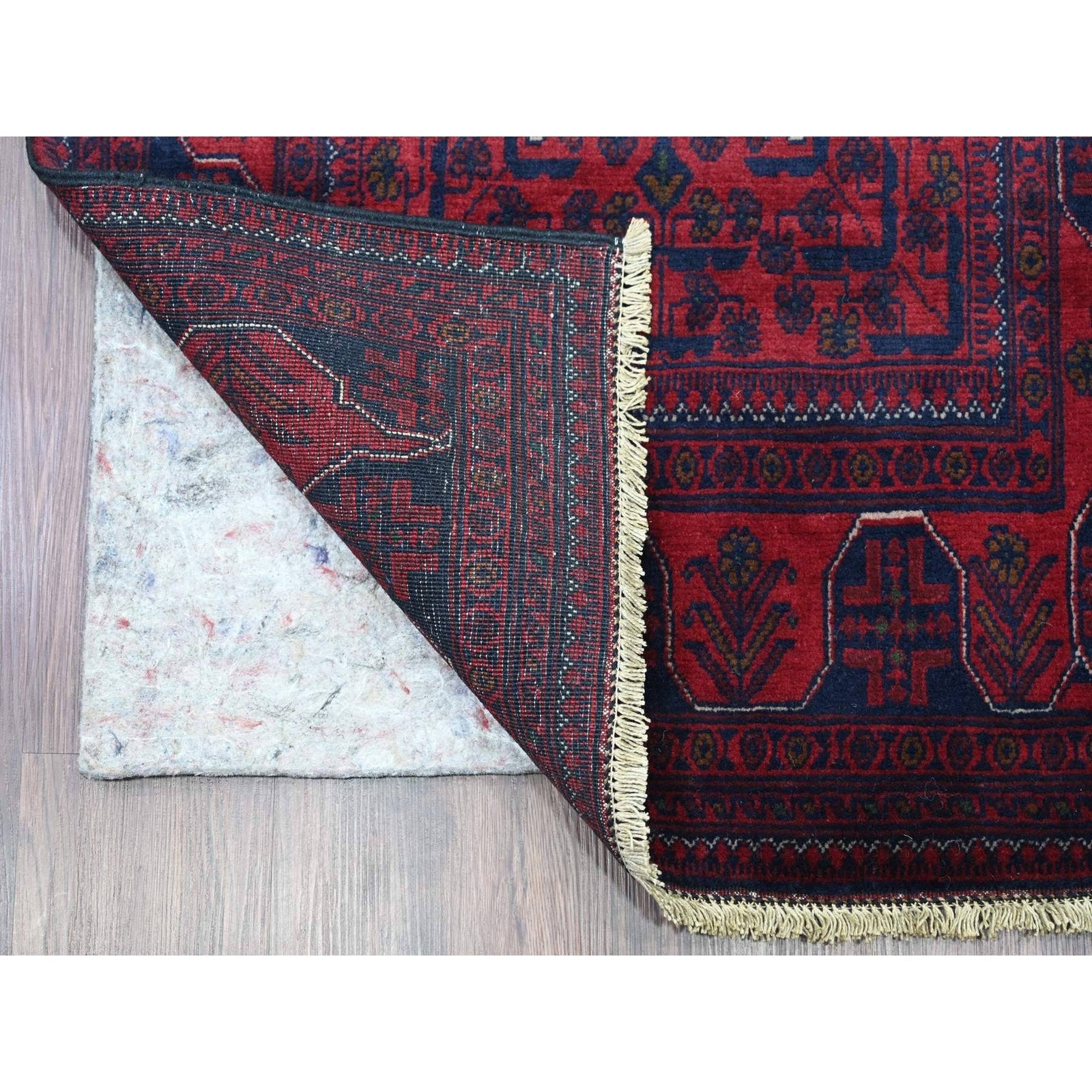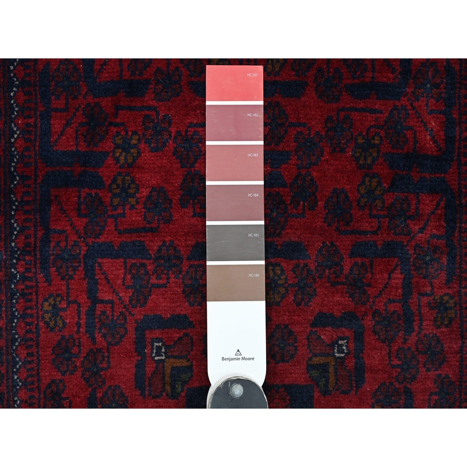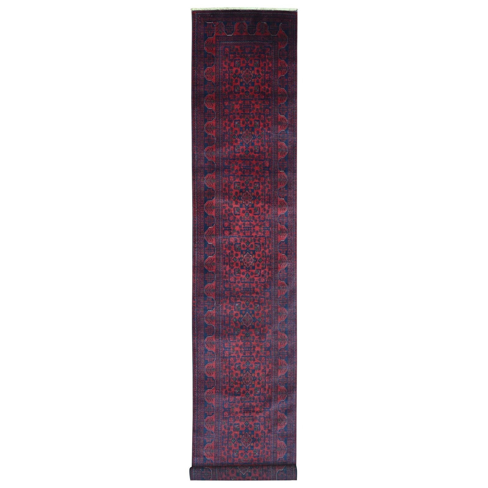 2'8"X16'3" Vermilion Red Afghan Khamyab Pure Wool Hand Knotted Runner Rug