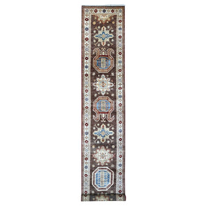 2'8"X17'4" Brown Hand Knotted Super Kazak Wool Xl Runner Oriental Rug