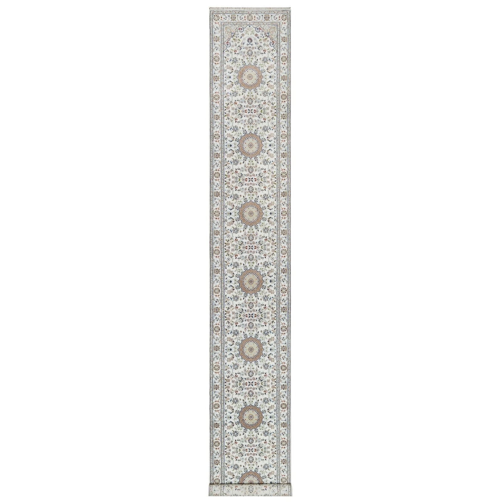 2'8"X17'8" Daisy White Nain 250 Kpsi Hand Knotted Wool & Silk Runner Rug
