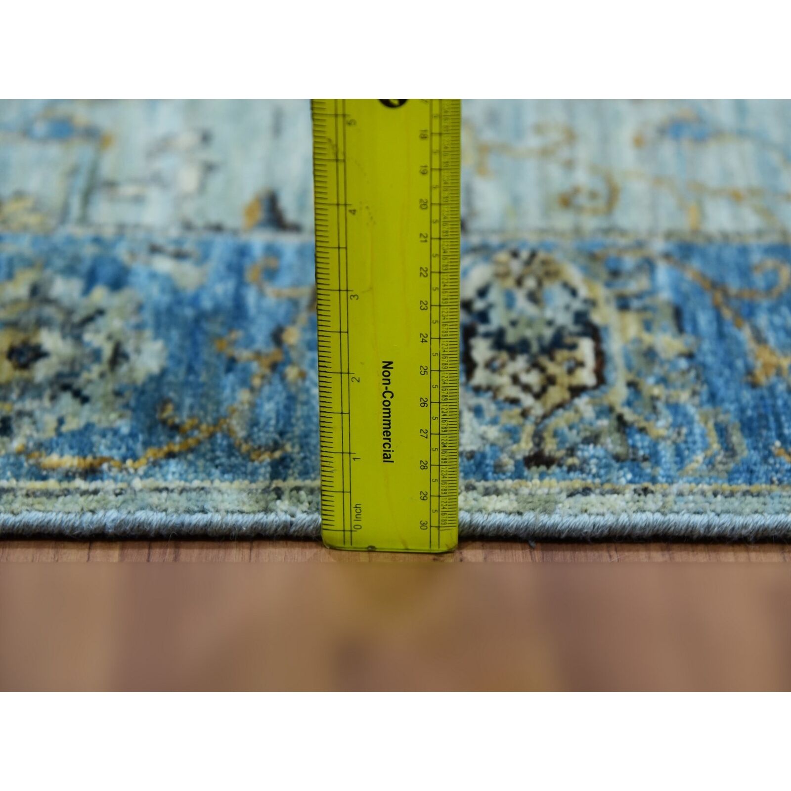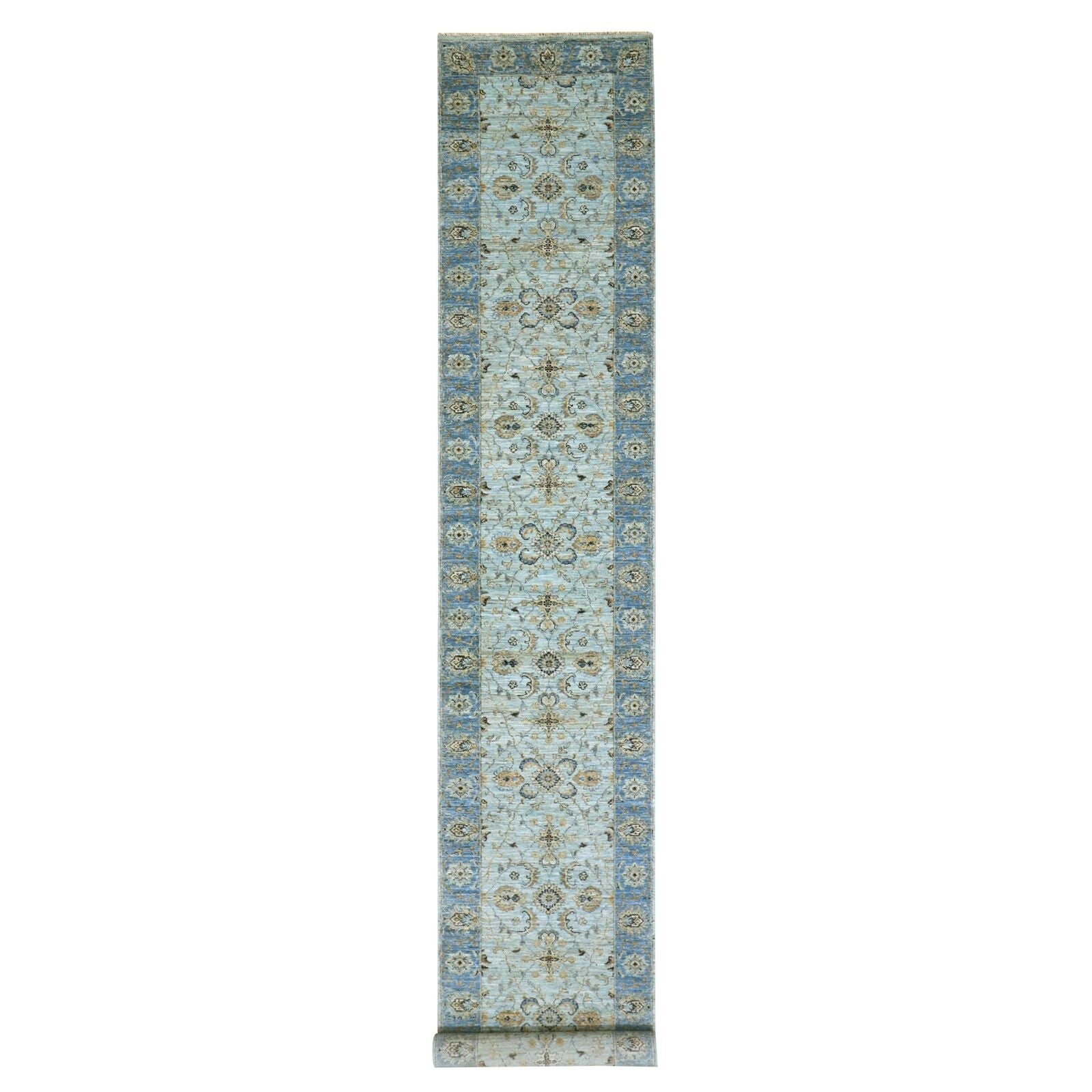 2'8"X22' Aqua Frost Blue Soft Wool Shah Abbas Hand Knotted Xl Runner Rug