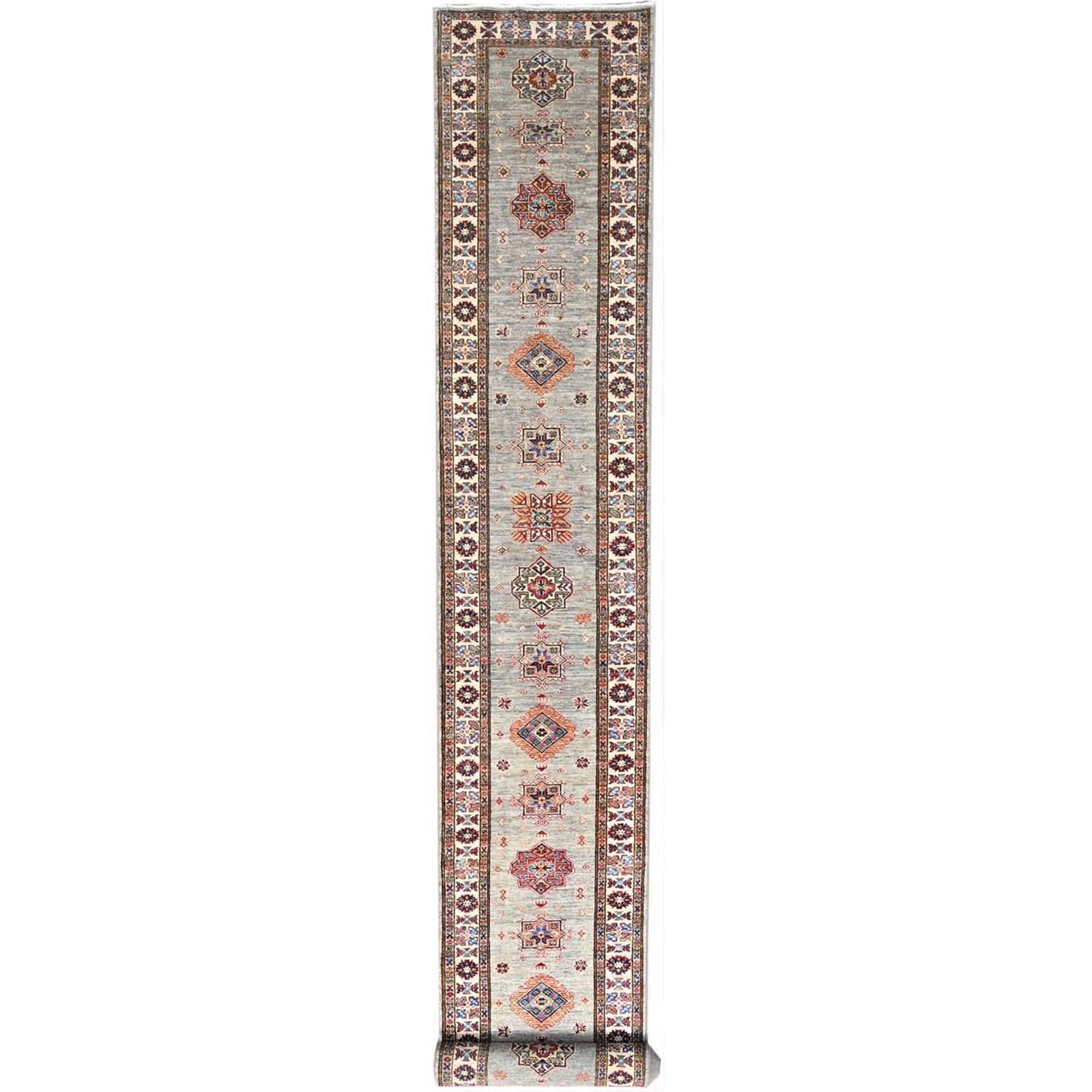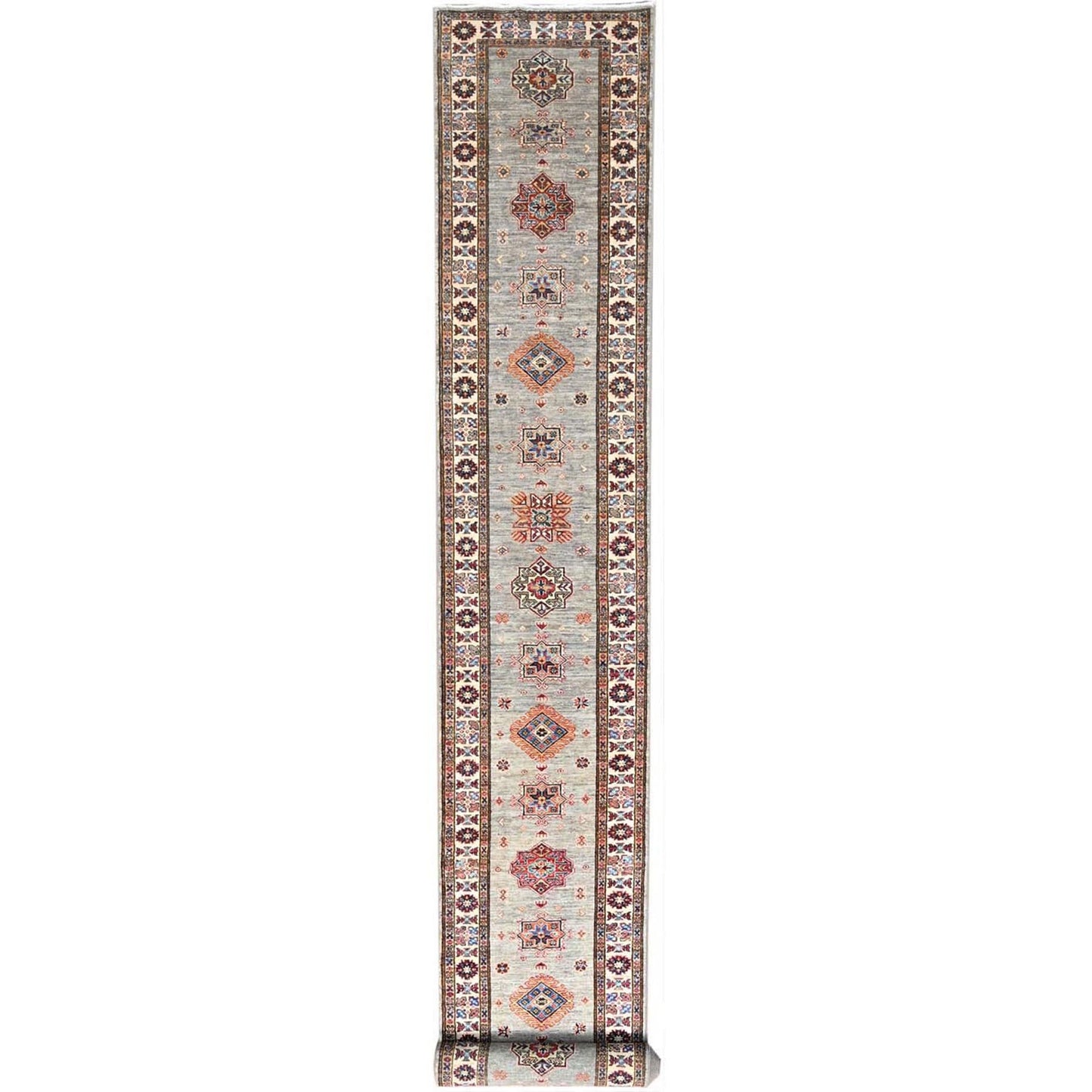 2'8"X22'6" Moon Gray Super Kazak Hand Knotted Wool Oriental Xl Runner Rug